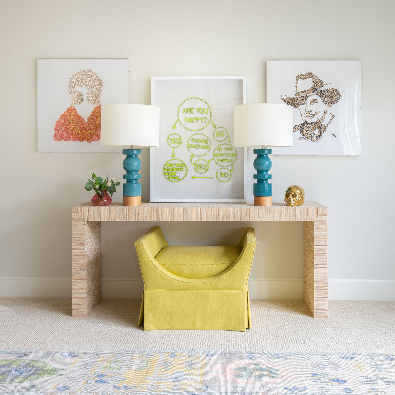 The Sprinkle Collection began with 'Life Used to Be So Hard', a happy piece with the phrase spelled out in rainbow sprinkles and a blue sky background. The idea came to me while I was bathing my newborn and toddler one night and life had Never. Been. So. Hard. The colorful rainbow sprinkles were an outlet for me and the series was born. The bears took a lot of tweaking to get just right, but they are sure to make any space a little more cheerful! The sprinkles are made from tiny pieces of hand-rolled clay and the bear inside is Styrofoam.