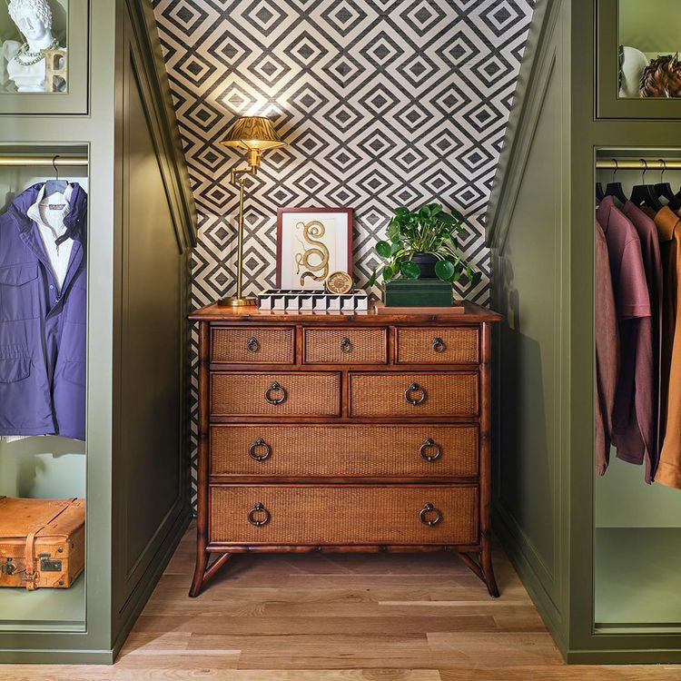 Dressing room featuring a SCOUTed vintage chest designed by @burklecreative and photoed by @stephen_karlisch_photo.