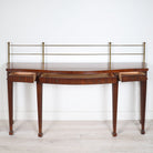 A polished brass gallery rail crowns the top, adding style while keeping trays and décor neatly in place. A sophisticated accent piece with timeless English-inspired design.
