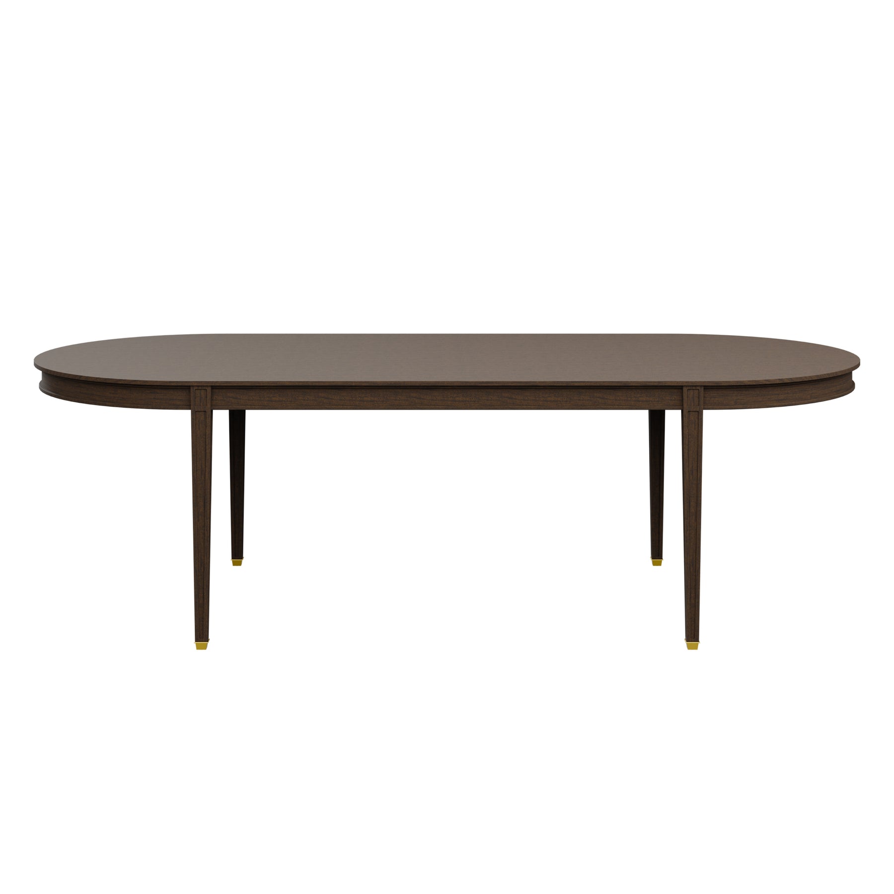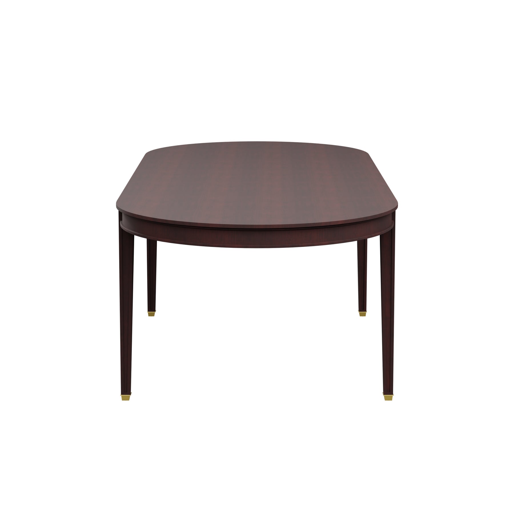 Our Custom Violet Dining Table features an elegant oval top with smooth edges, offering ample space for dining and gatherings. Supported by four sleek, tapered legs adorned with subtle brass-capped feet, this design blends classic craftsmanship with modern refinement. Its timeless aesthetic makes it a perfect addition to both traditional and contemporary interiors.
