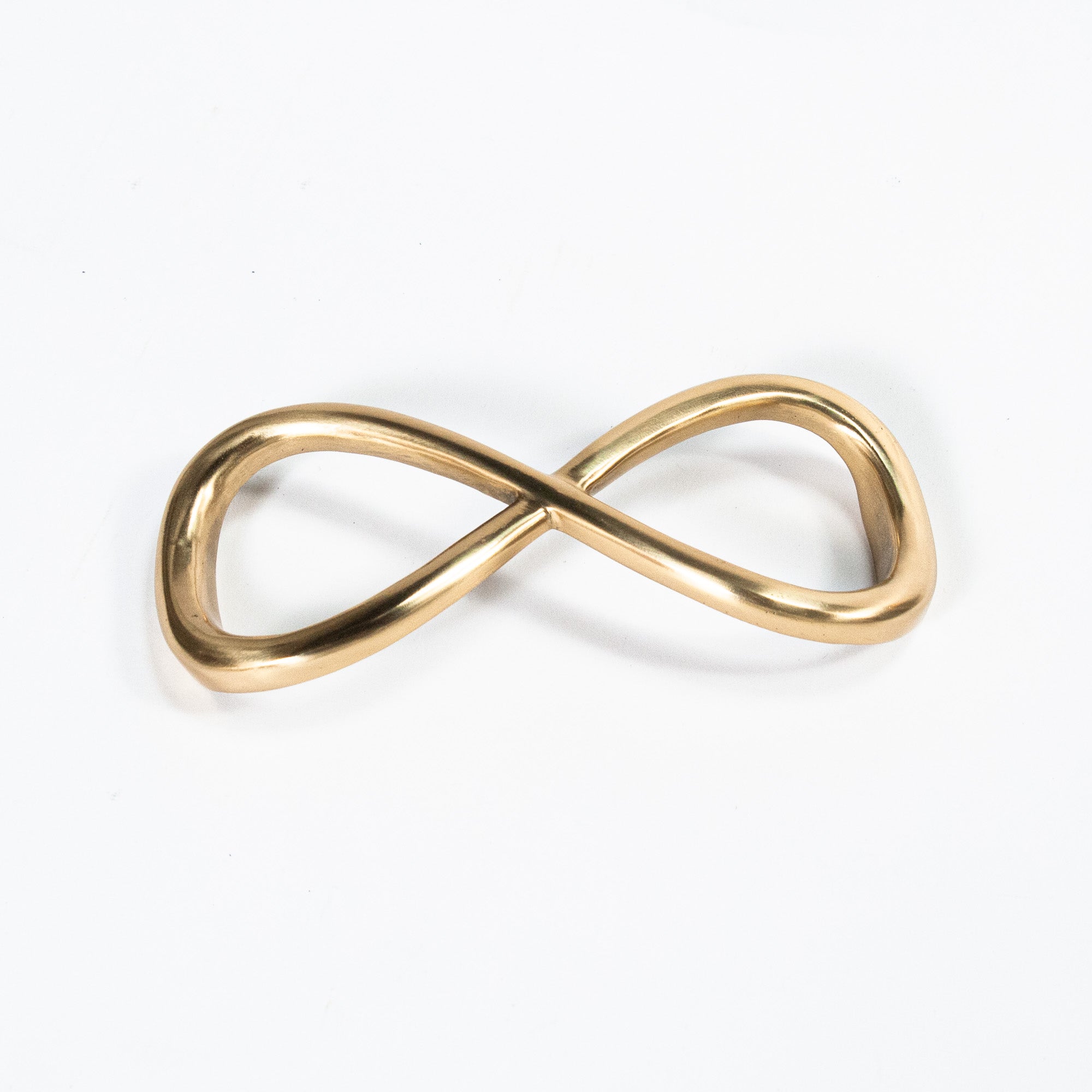 Unique brass infinity hardware for cabinet doors or drawers, sold individually.