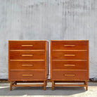 Each piece offers four spacious drawers with cylindrical bamboo pulls and wrapped leg detailing — the kind of craftsmanship that never goes out of style. Perfect as bedside storage, a matching pair in a guest room, or statement dressers in a coastal-inspired space.
