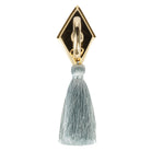Our Tassel Knob features a diamond brass backplate and ring pull with carved details.