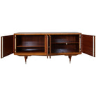 Inside, wide shelves make it effortlessly practical. Resting on tapered legs capped with brass sabots and round feet, it’s modernist style with just the right touch of shine — elegant, understated, and ready to anchor your space.