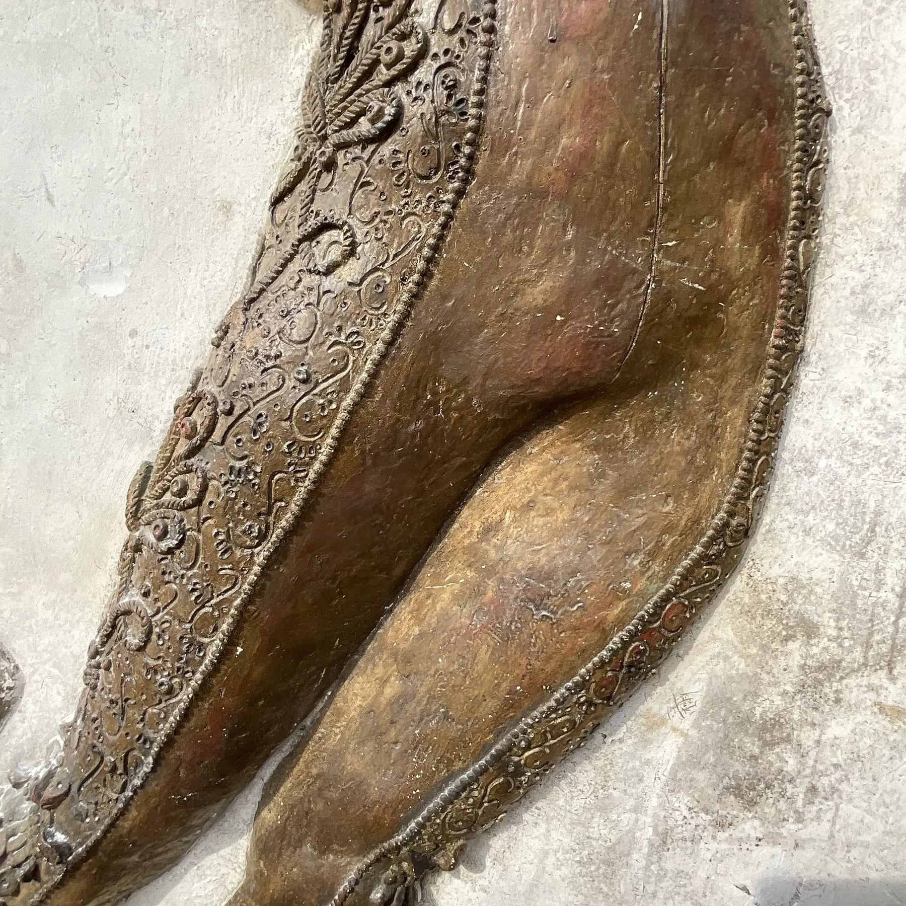 Vintage Metal & Stained Glass Lady Sculpture Lamp