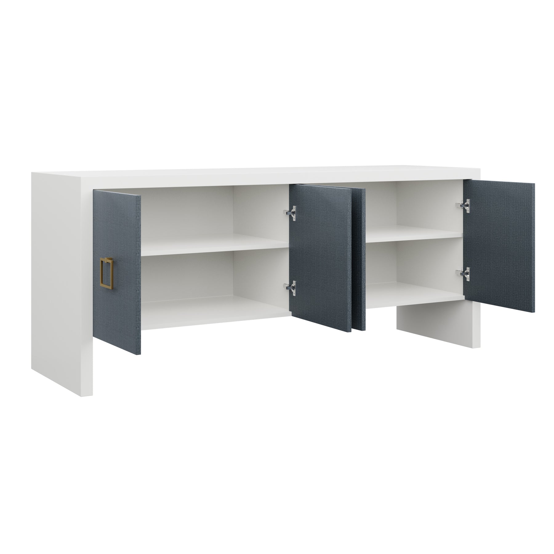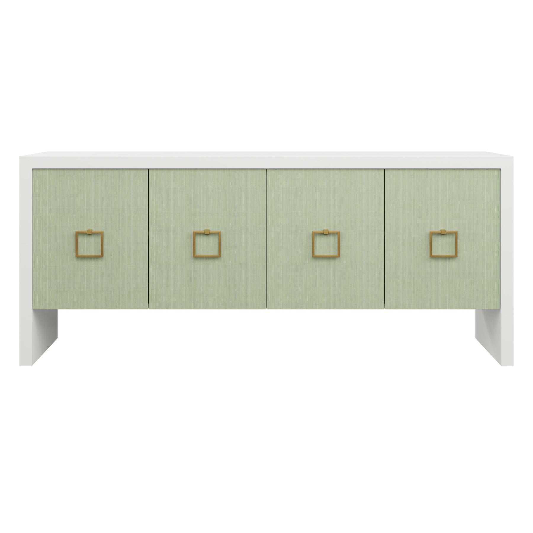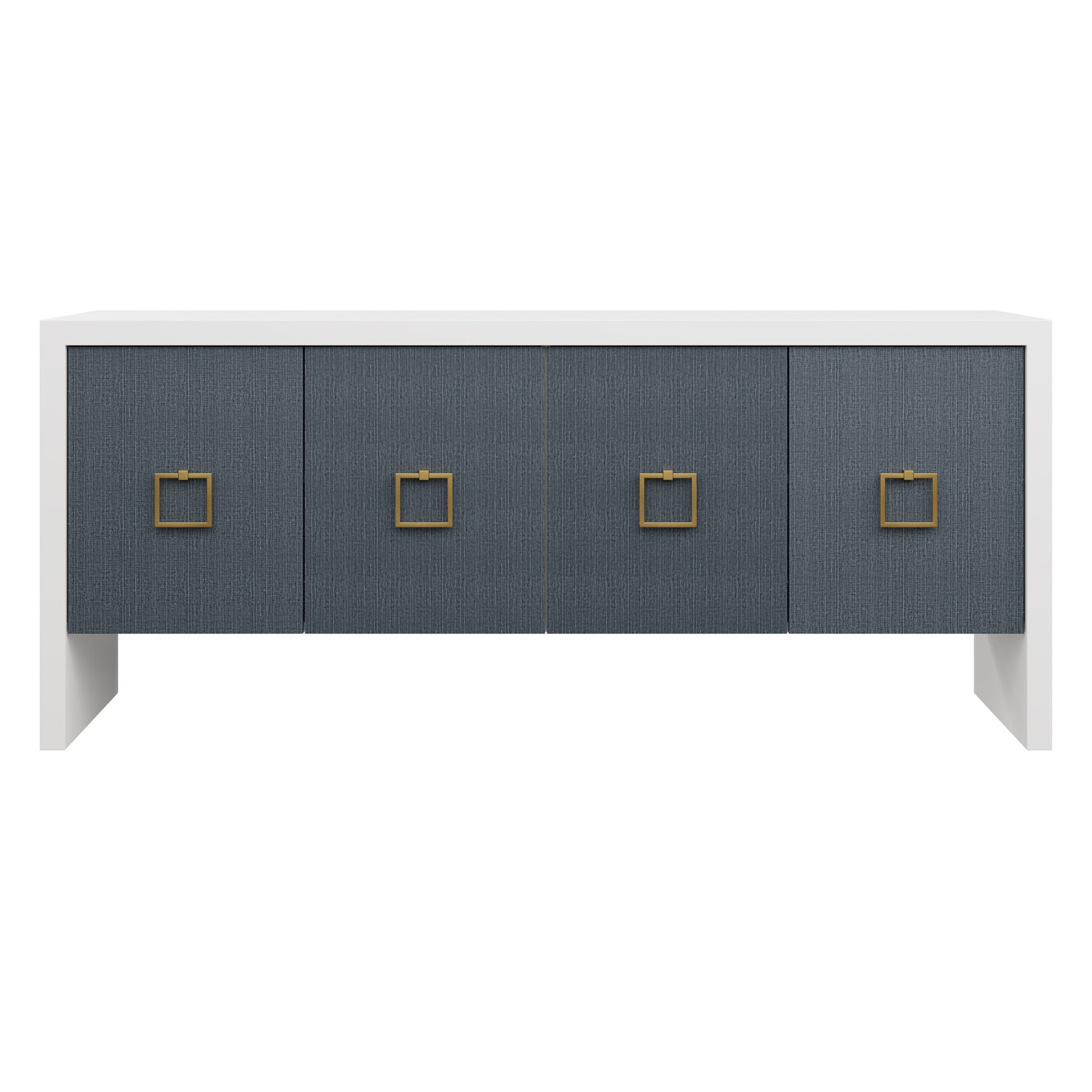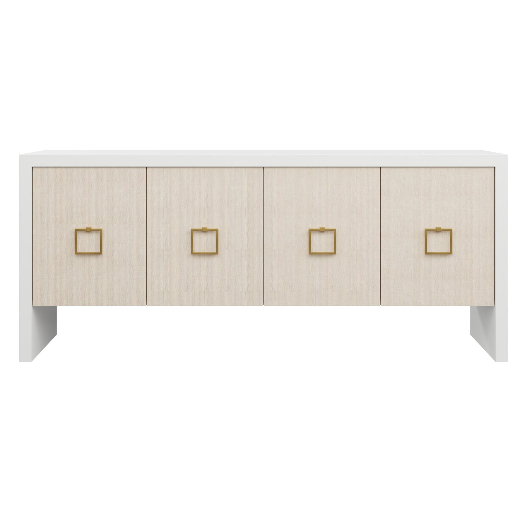 Our bespoke Deloache Credenza features a simple waterfall frame that allows hardware to shine. Two cabinets house one adjustable shelf each for storage.