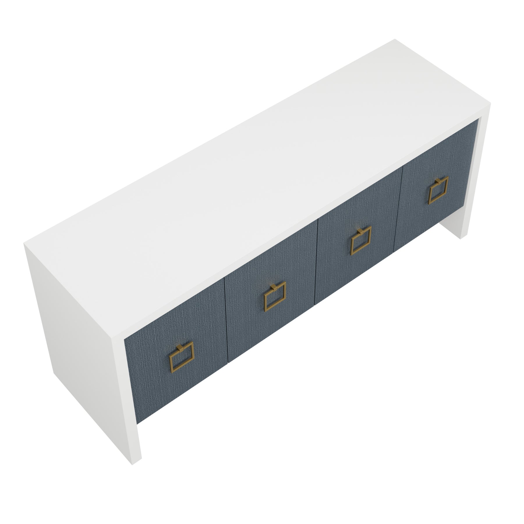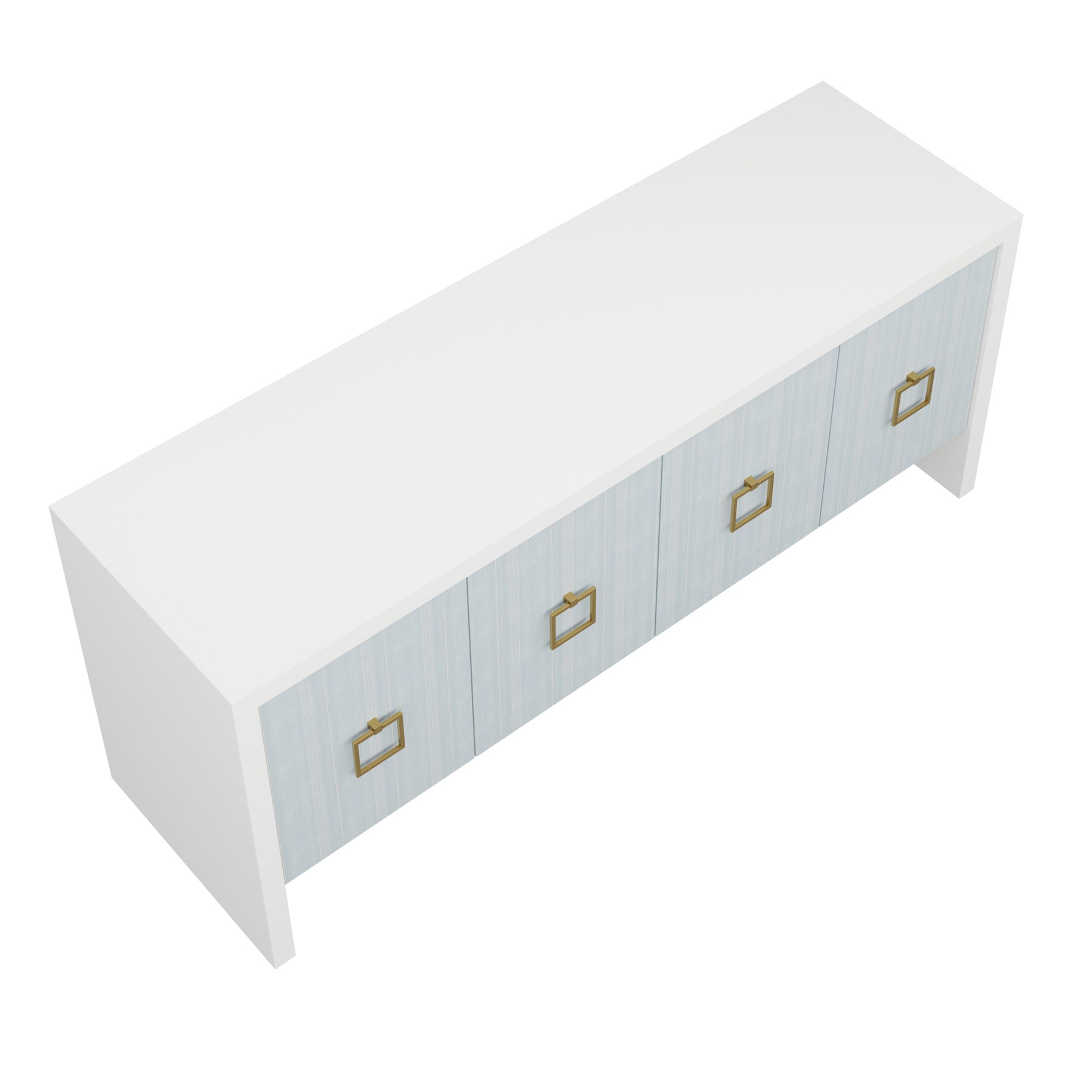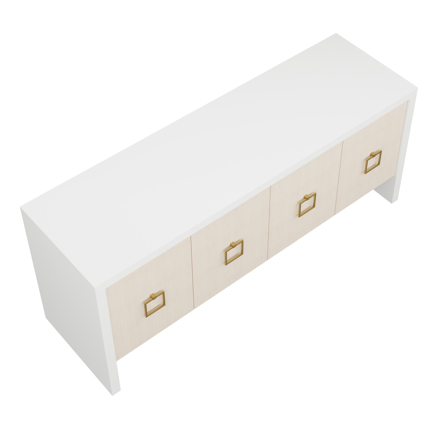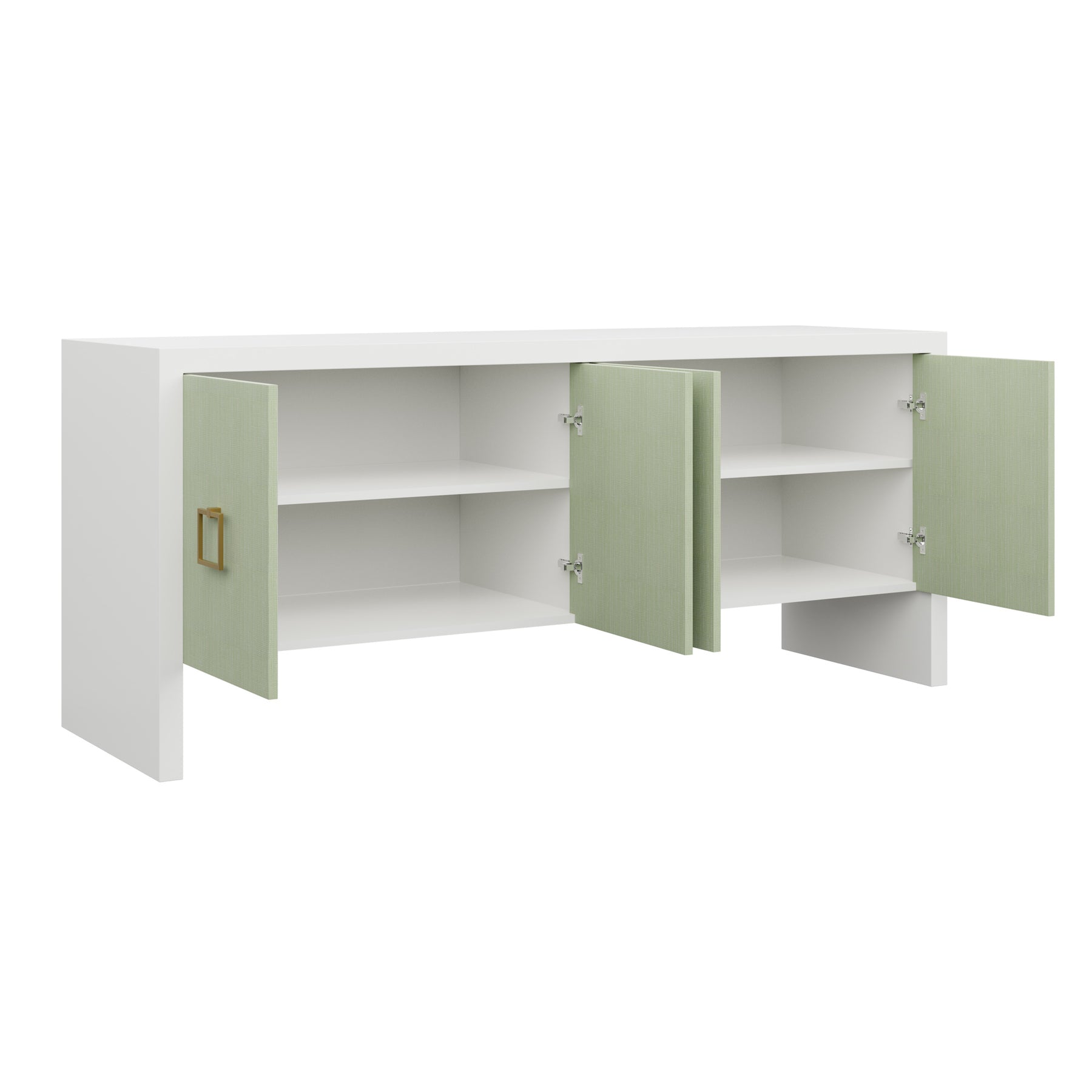 Our bespoke Deloache Credenza features a simple waterfall frame that allows hardware to shine. Two cabinets house one adjustable shelf each for storage.