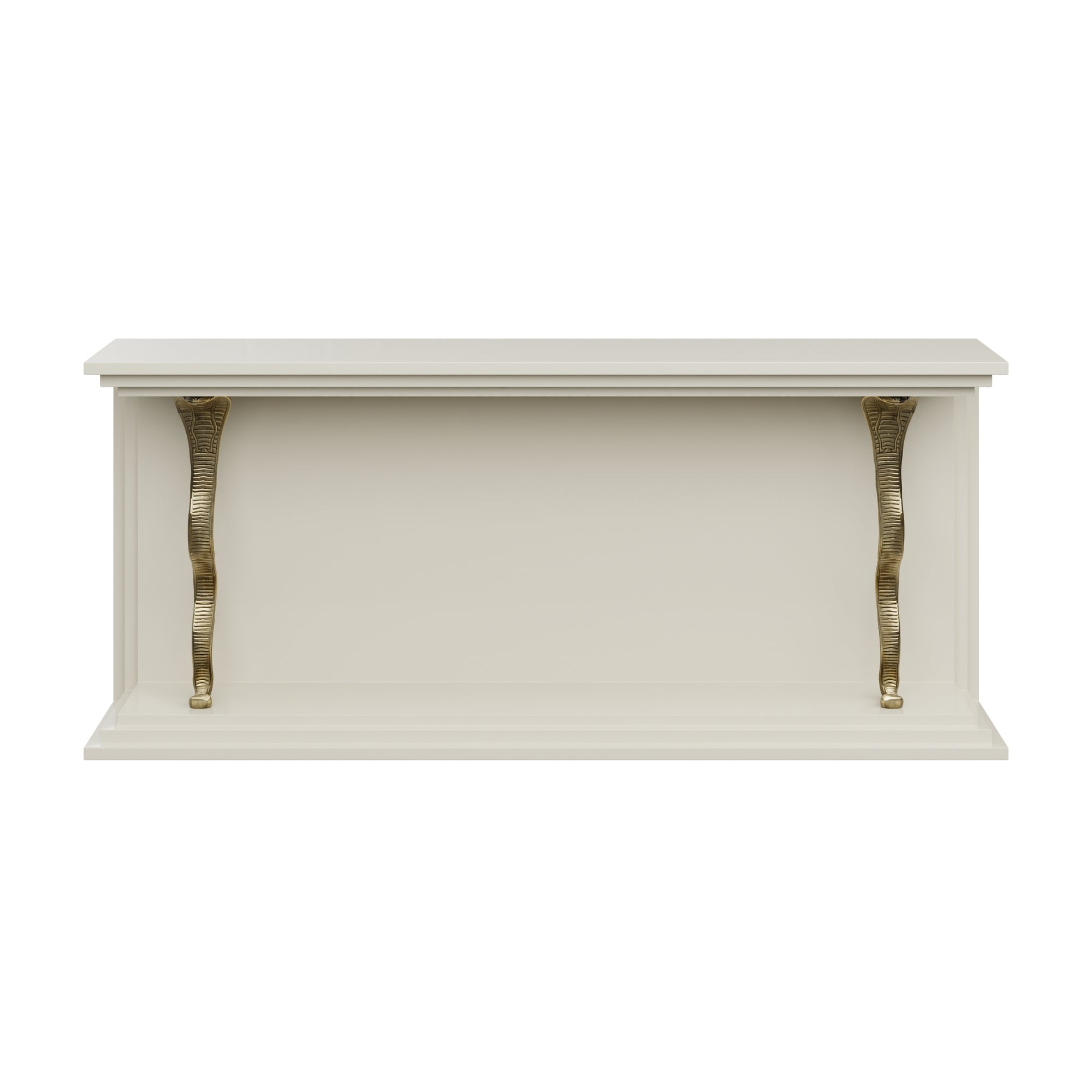 Meet the Marengo. A high-gloss lacquered console anchored by sculptural brass serpent legs, it’s the kind of piece that turns a hallway into a moment and a living room into a story. The lacquer finish is jewelry-box level — smooth, saturated, and polished to a mirror sheen — offered in a curated range of hues selected by our team (from quiet neutrals to unapologetic color).