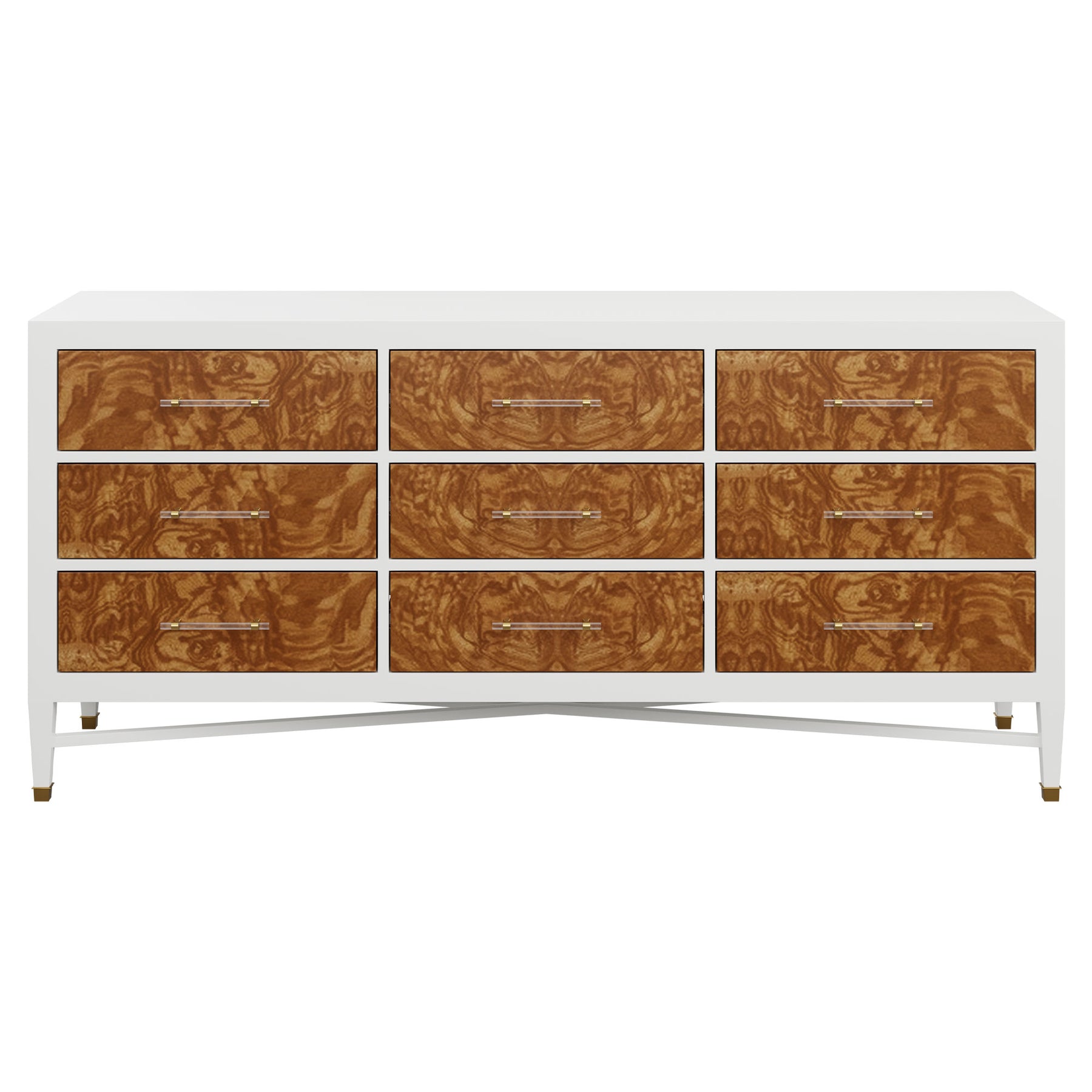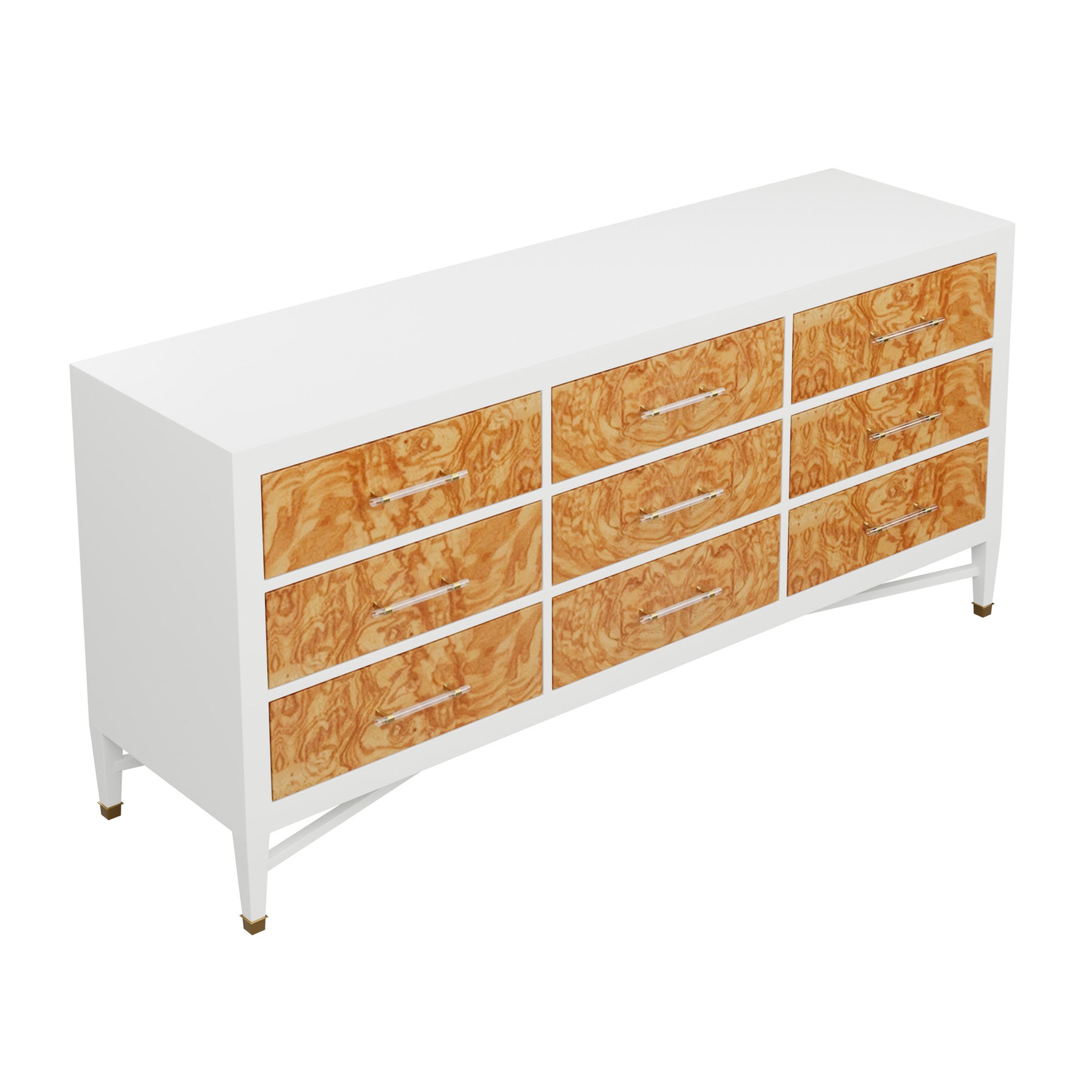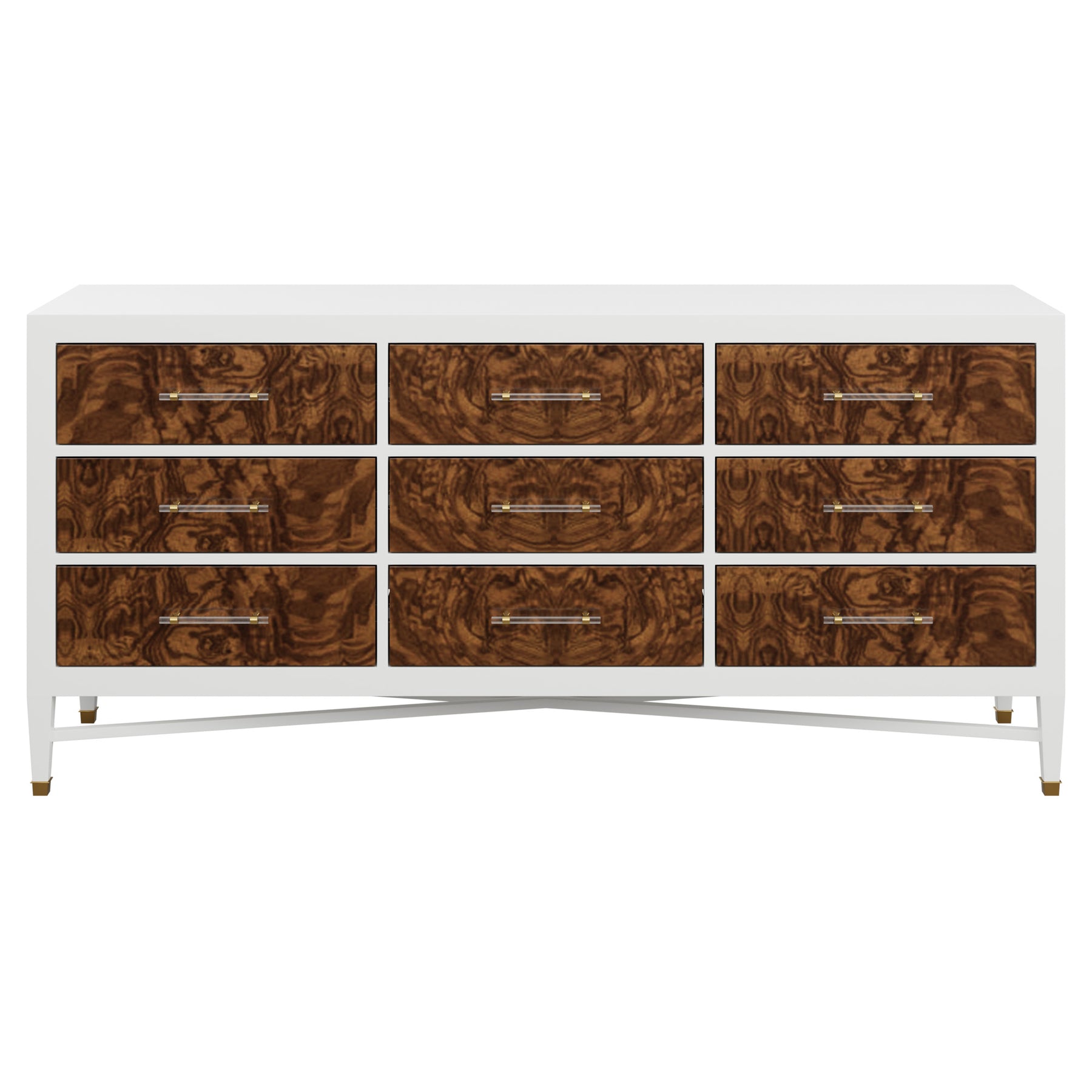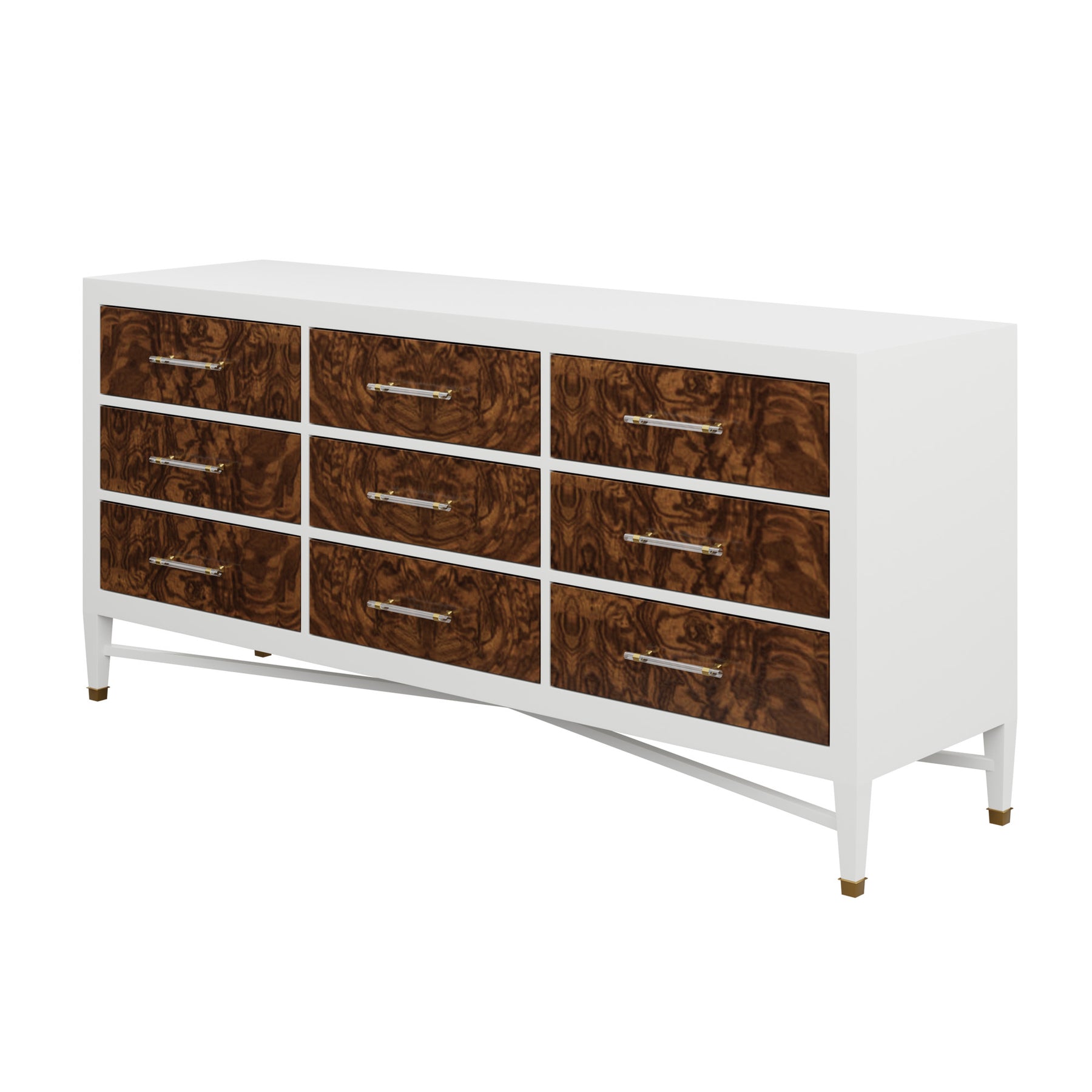 Our Sadie Dresser is a stunning combination of roomy drawers and brass sabot feet with a smooth lacquer frame. Fully customizable, choose from our designer-curated selections, or contact us to customize your dresser further. Anything is possible with our in-house team!