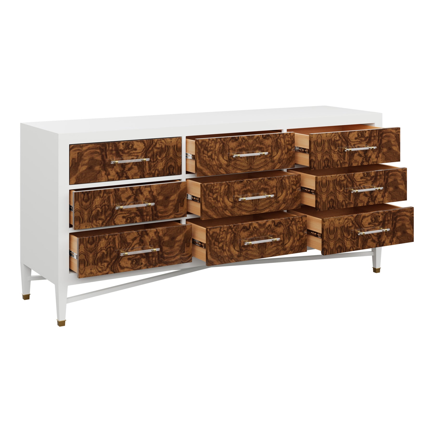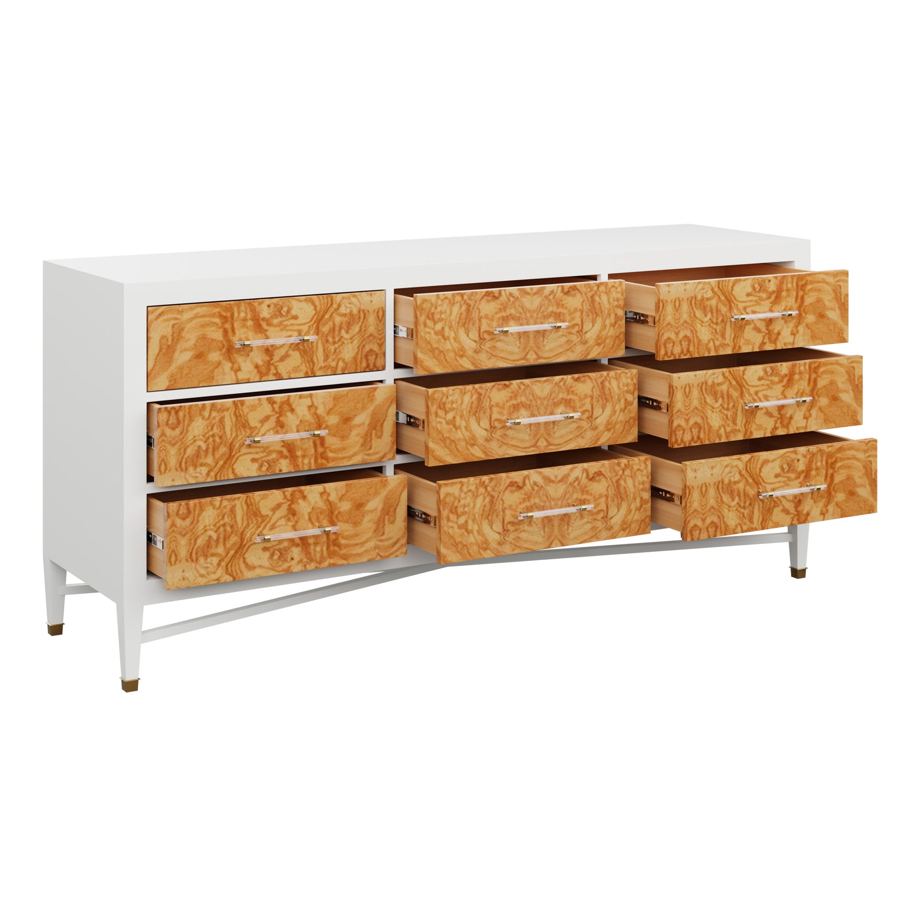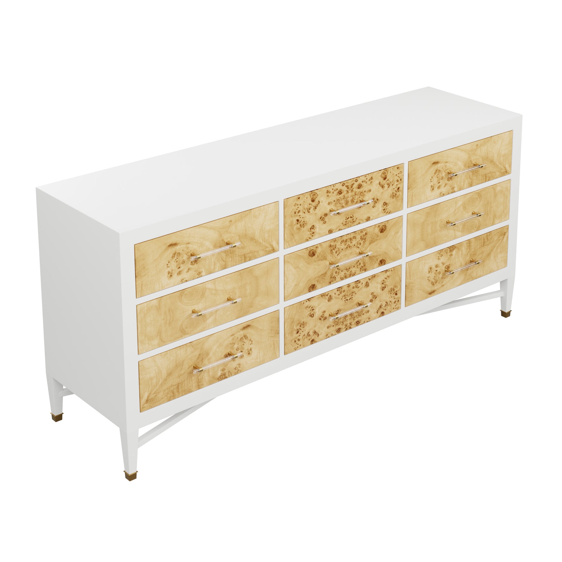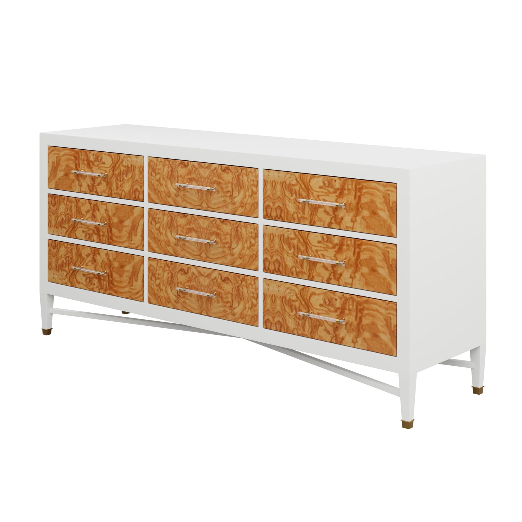 Our Sadie Dresser is a stunning combination of roomy drawers and brass sabot feet with a smooth lacquer frame. Fully customizable, choose from our designer-curated selections, or contact us to customize your dresser further. Anything is possible with our in-house team!