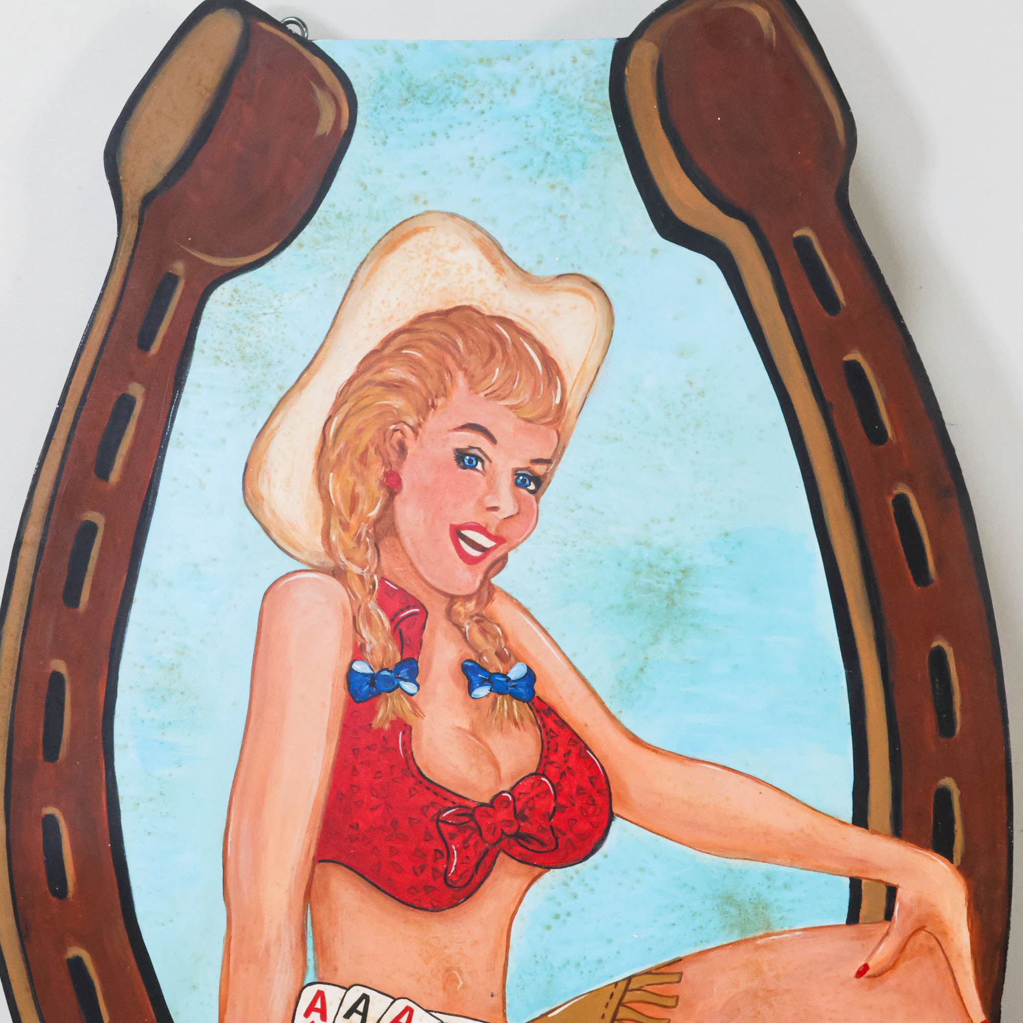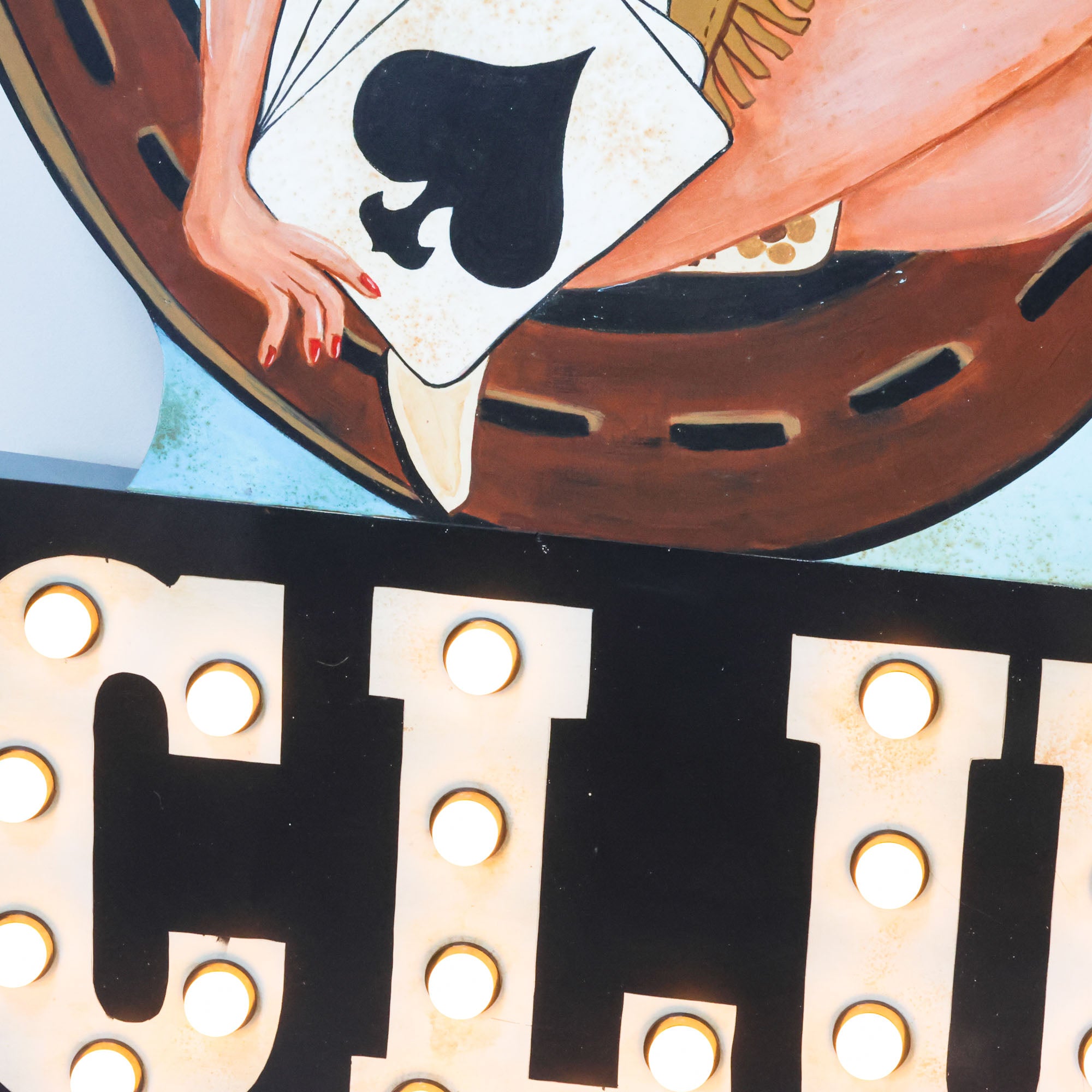 Horseshoe Club light-up sign with 28 bulbs, made to look vintage by artist Garland Murphree. Two light settings with one flashing.