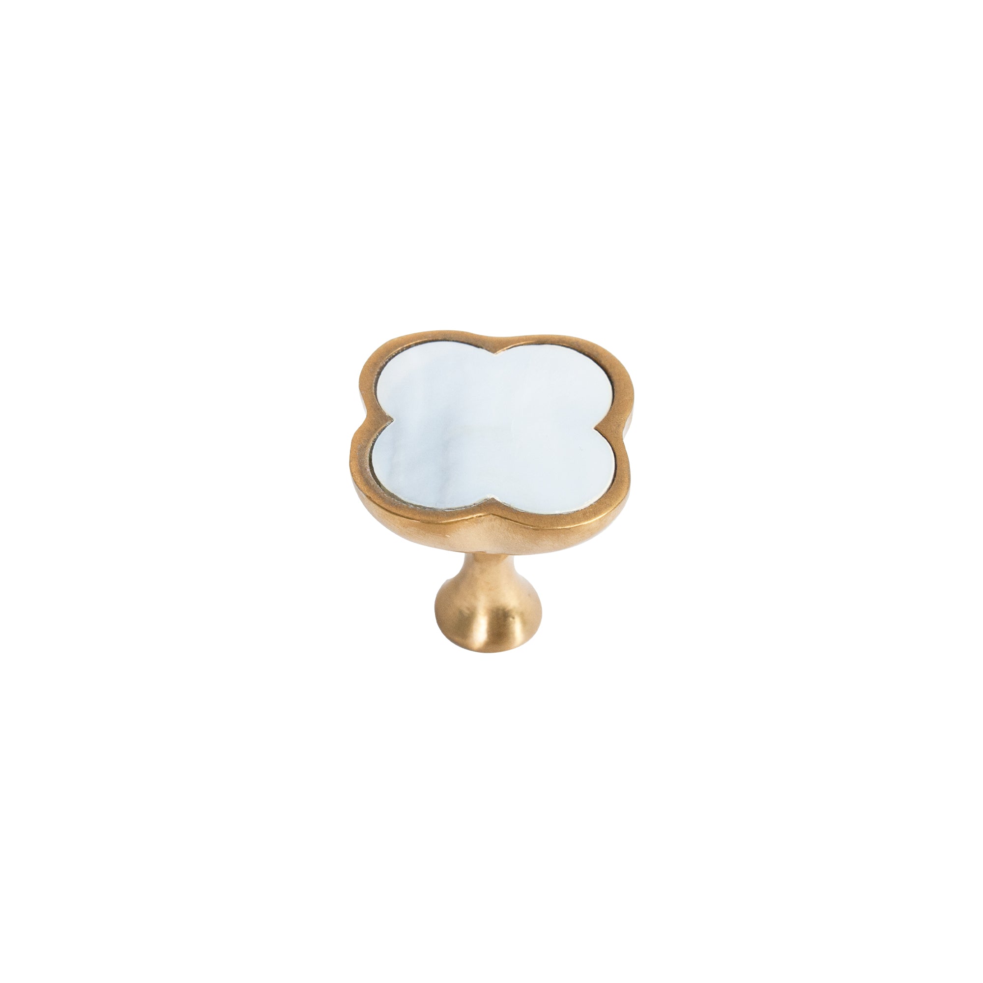 Contemporary & chic pull made in the shape of a clover. Finished in brass and filled with marble.