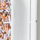 New from the Tat Frederick studio, P Funk features faux cigarettes hand-crafted from paper that have been individually placed into a faux deli container. A steak sticker, metallic cigarette tips and plastic wrap are the finishing details before everything is fixed to canvas and framed in a shadowbox.