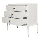 Our Clancy Chest is a cool, collected classic that still knows how to have a little fun. Dressed in matte white lacquer, this three-drawer beauty brings a fresh, polished look to any room while keeping things playful with its blue tassels and brass hardware.
