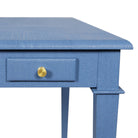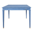 With 4 push-close coasters tucked into each corner and finished with petite brass pulls, The Parlor Game Table is ready for every shuffle, sip, and showdown. The tapered legs, subtle step-detail corners, and polished brass sabots bring a refined edge to its classic silhouette. Wrapped in a stunning and durable blue faux linen, the tabletop’s opposing directional weave adds extra depth and dimension.