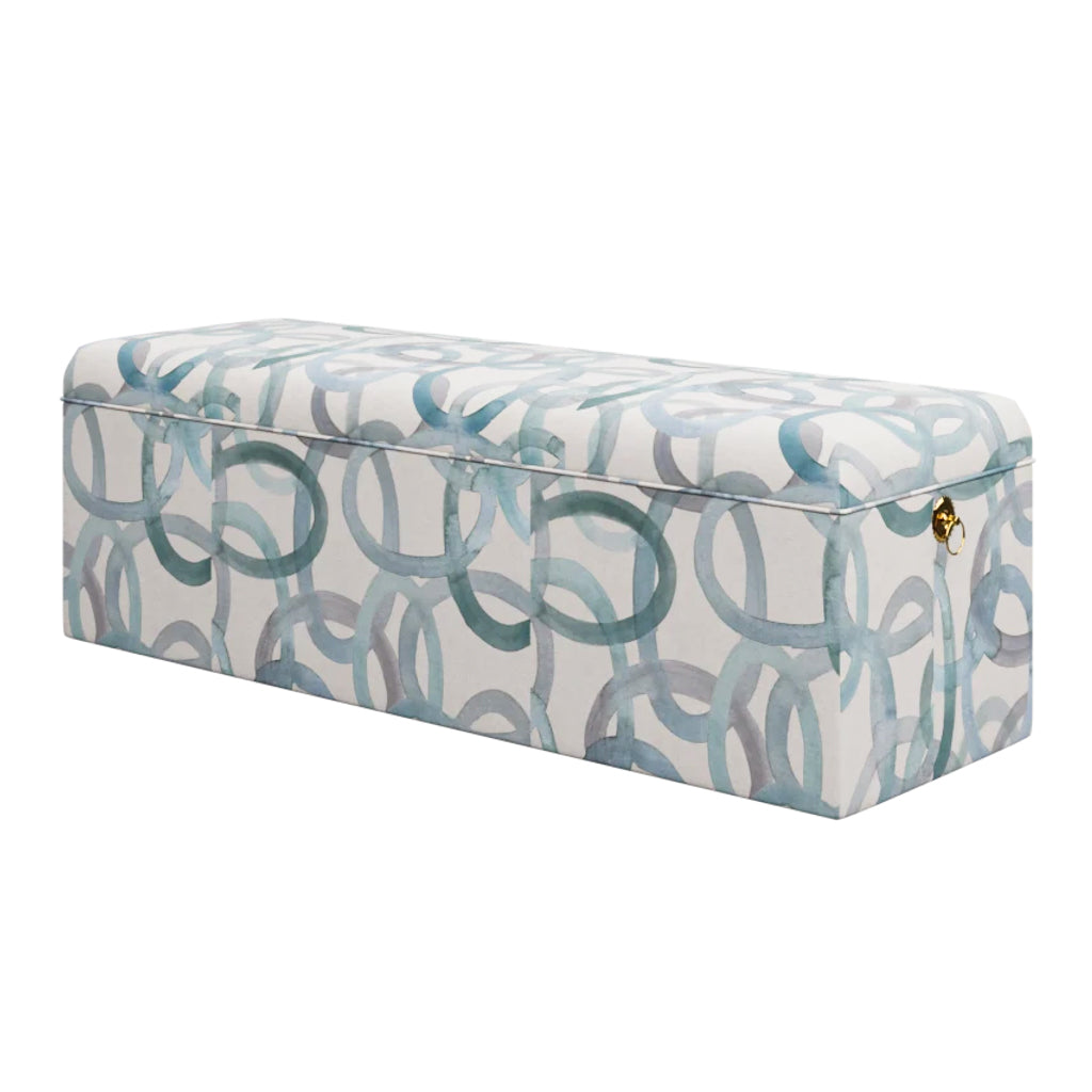 Watercolor Circles Blues Fabric and Cirrus White Lacquer