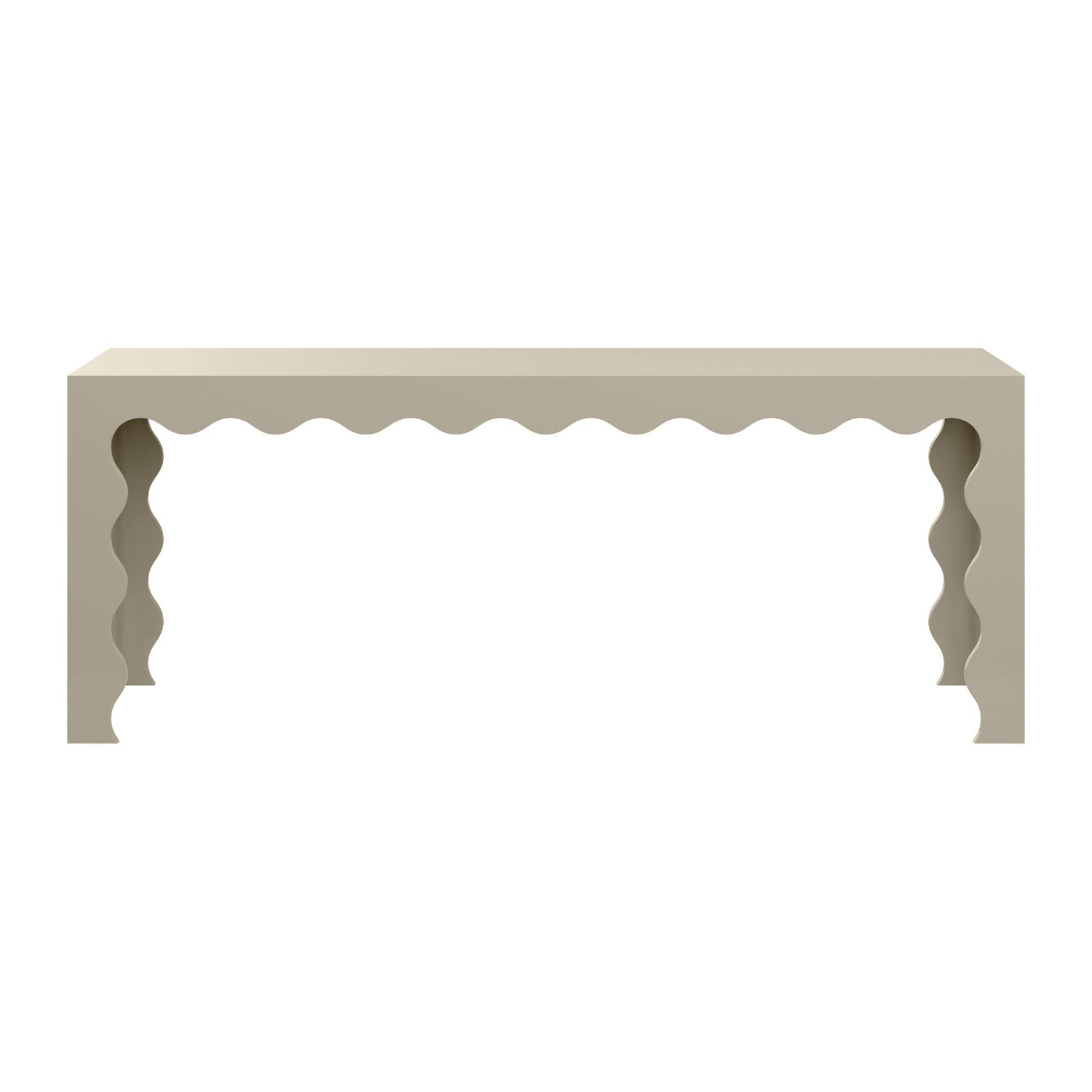Chic and playful, our custom Elizalde Console Table features a blend of traditional and modern design that results in a perfectly transitional feel. Handcrafted scalloped edges add a charming touch to this console's sophisticated shape and keep the eyes moving amidst contrasting straight lines.