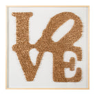 New from the Tat Frederick studio, this unique piece is sure to get ya thinking. Features painted gold toy soldiers that have been individually hand-fixed on canvas to spell out 'LOVE'. Framed in wood.