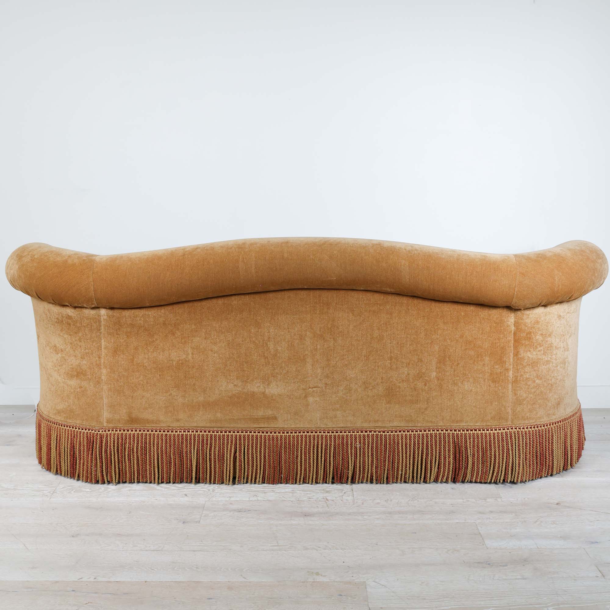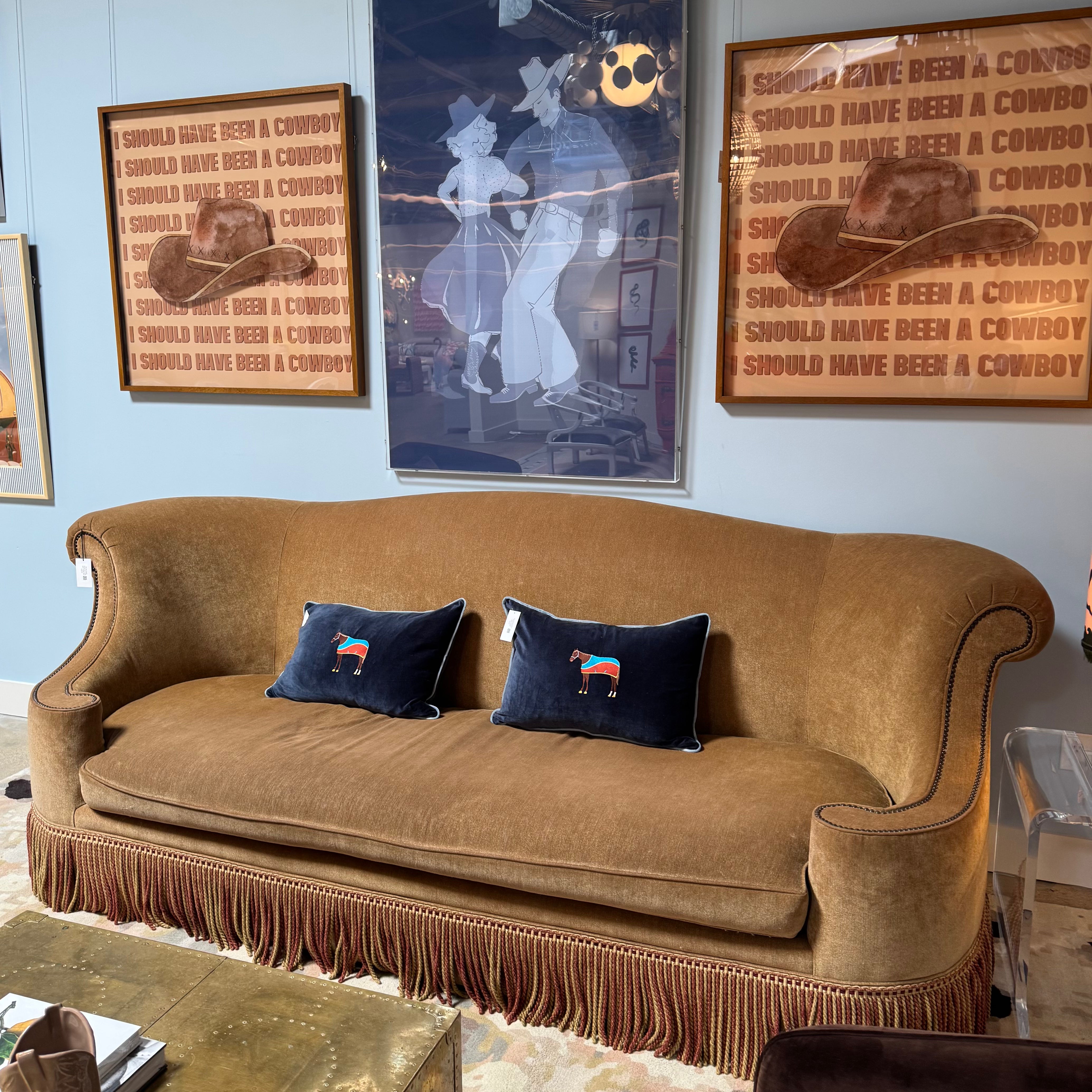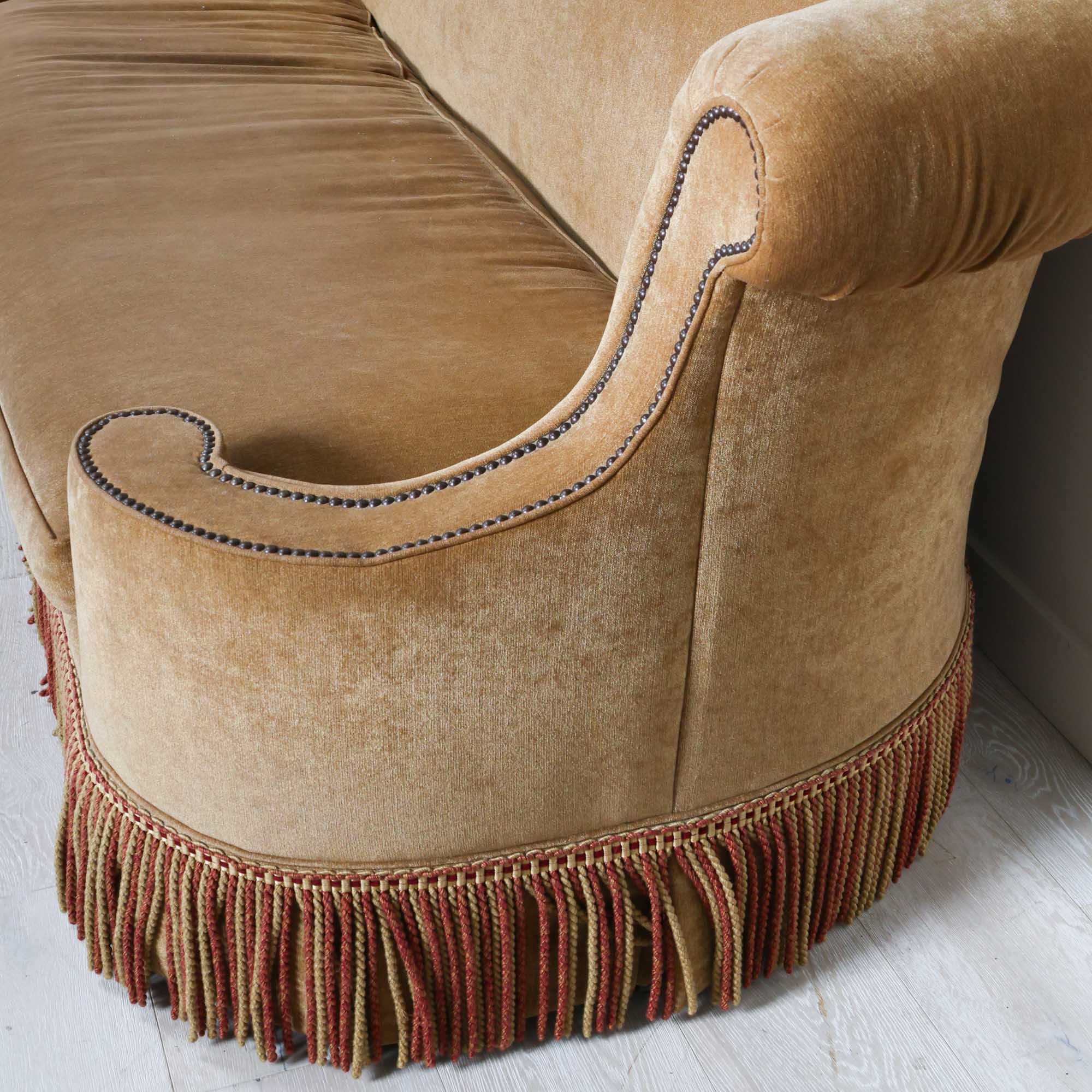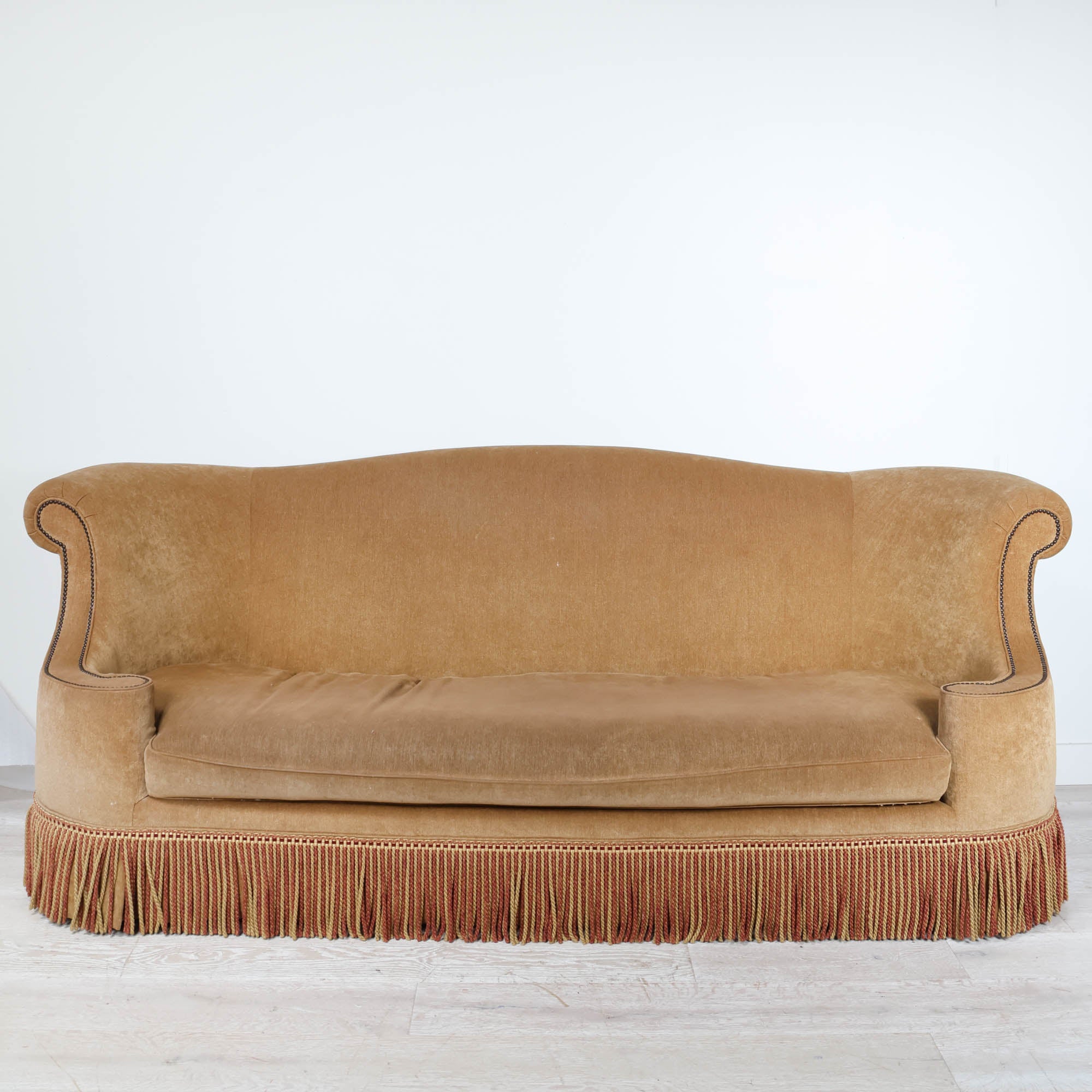 Who doesn’t love sitting on a spacious scroll arm sofa? Plush and pretty, this fringe skirted seat is a real gem.
