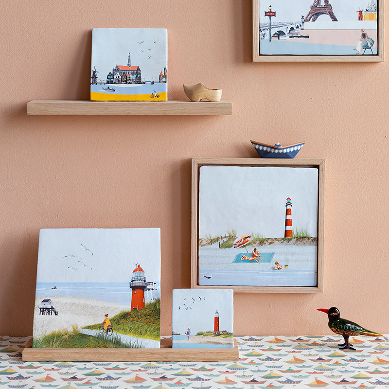 Ceramic tiles have been made in and around Delft, The Netherlands, since the 16th century. StoryTiles continues the tradition by creating miniature art-on-tiles. All tiles are baked in traditional Dutch ovens at a high temperature, what makes them heat and water resistant. Each design is unique, as it is hand baked and designed.