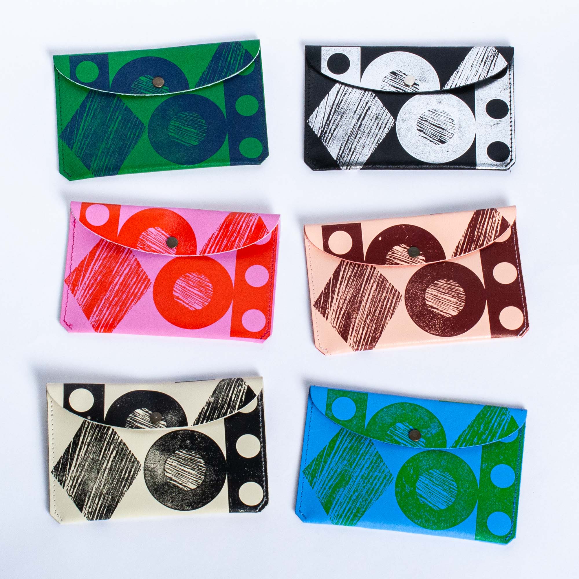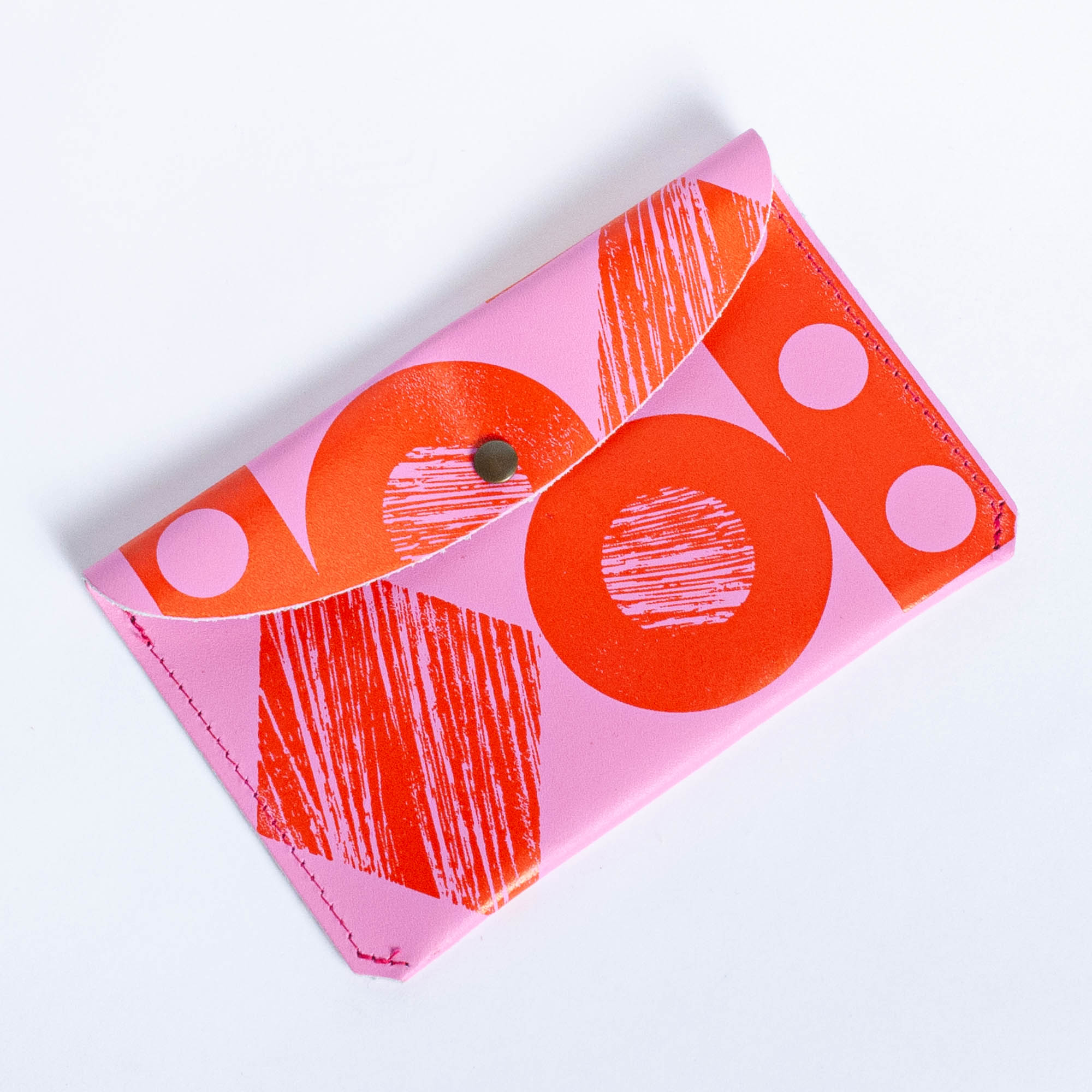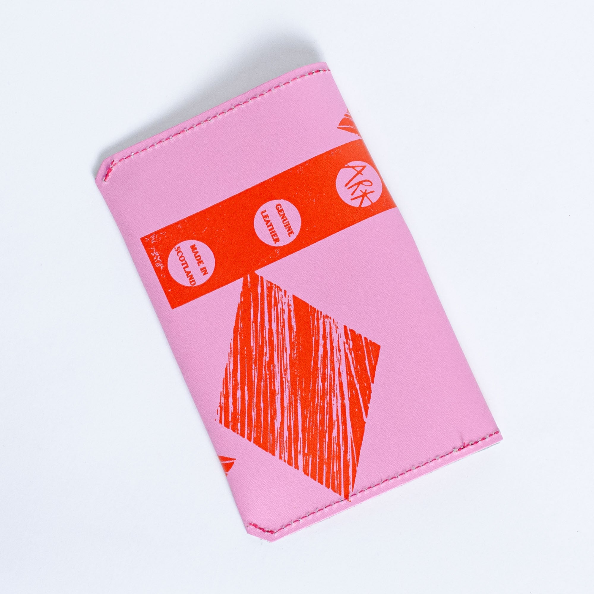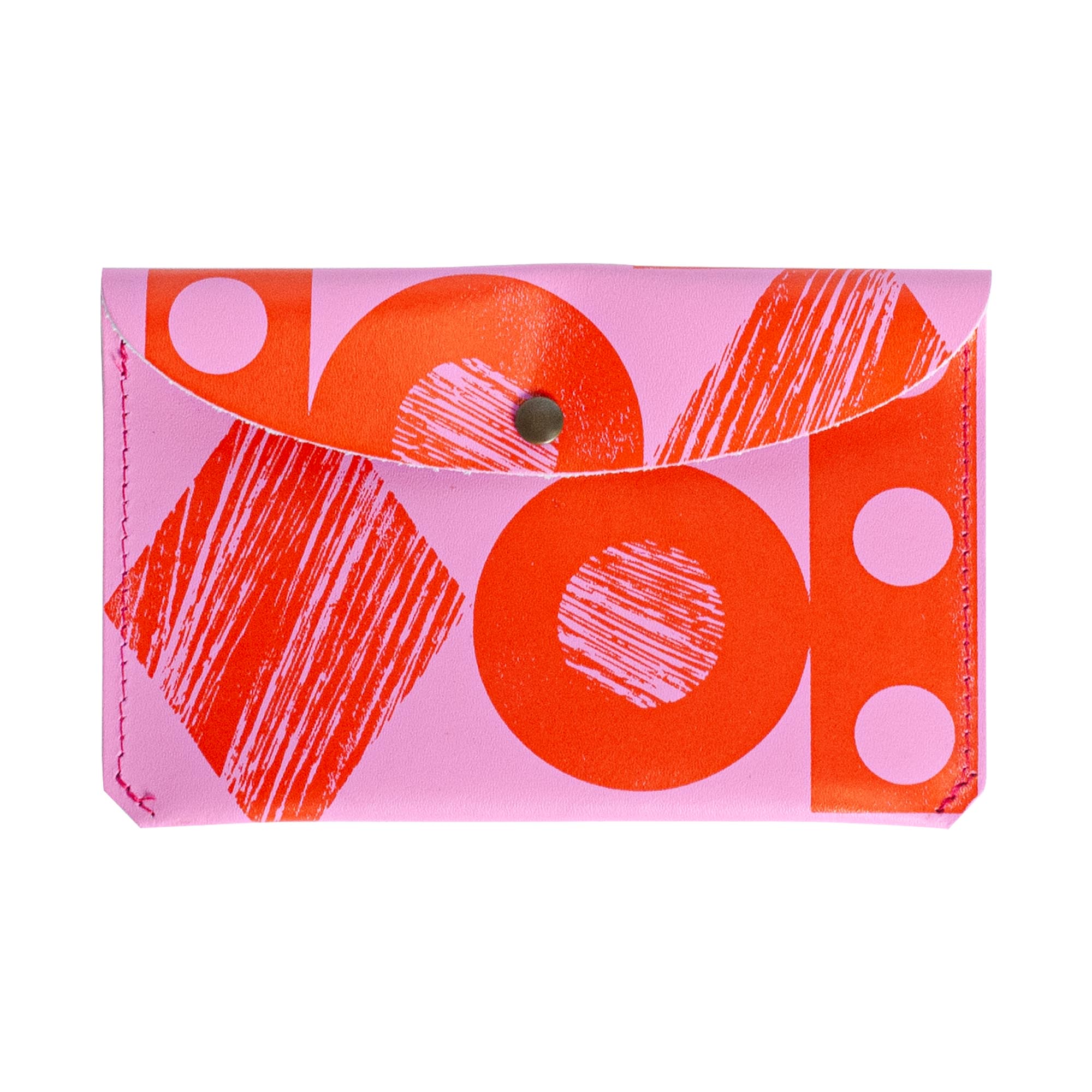 Hot pink and red leather pouch with shapes by Ark Colour.