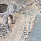 Our Delilah rug features an abstract design of blue, grey and black hues against a tan background. Made of silk with a luxurious sheen that won't go unnoticed.
