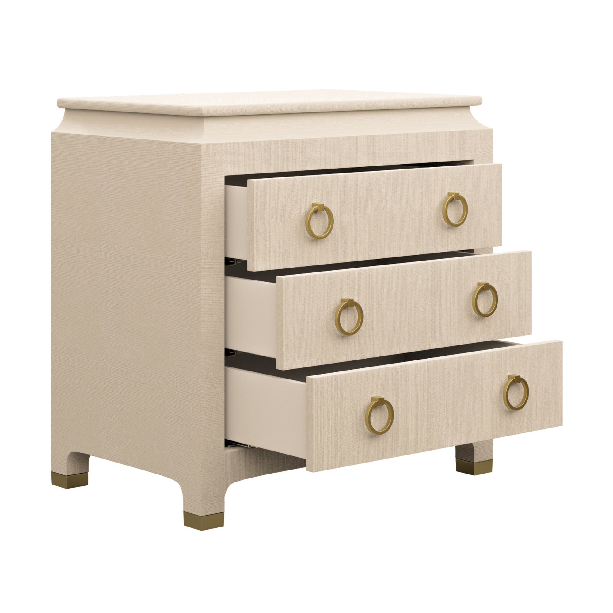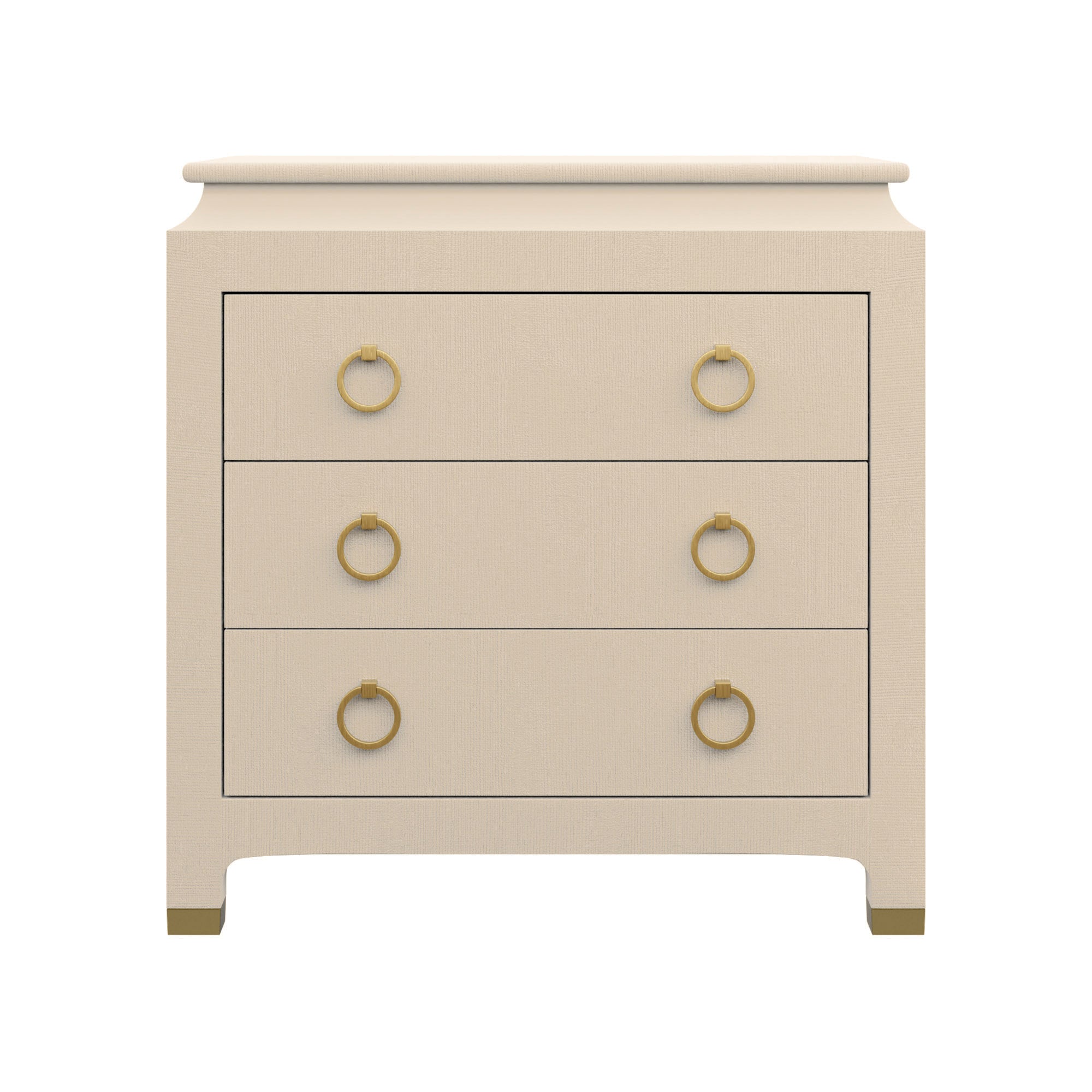 Unlock the secrets of sleek design with our Sleuth Chest. With its clean lines and unique silhouette, the Sleuth brings a touch of drama to your space, while the brass ring pulls and sabot feet add sophistication.