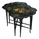 The glossy black finish and faux bamboo legs lend a striking contrast, making it a standout accent table for any living room, hallway, or reading nook. Whether used to serve afternoon tea or to showcase treasured décor, its artistic craftsmanship and ornate tray top add both sophistication and function.