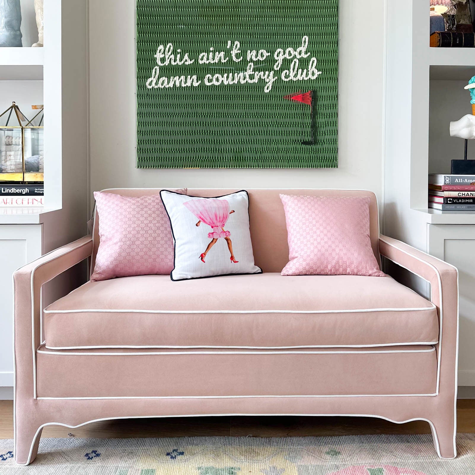 Now available in a loveseat size, the Cary Chair Two Seater features a modernized Parsons design. Contrast piping sets this baby off in any setting, while plush cushioning means you can lounge & linger. Shop the chair version of Cary here.