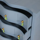Whether it’s holding court in your foyer or leveling up your bedside game, Charlie is perfect for keeping your secrets tucked away with three large soft-close drawers. The blue faux linen finish offers optimal durability and textural intrigue.
