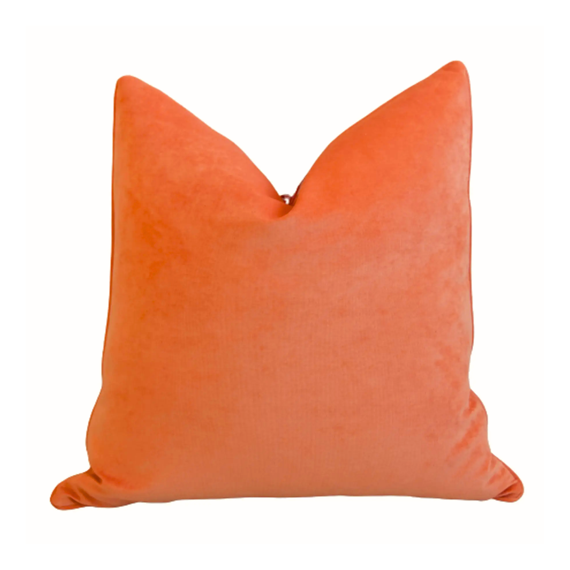 In Stock 22” Square Pillow in Tiger Velvet and Monet Tangerine