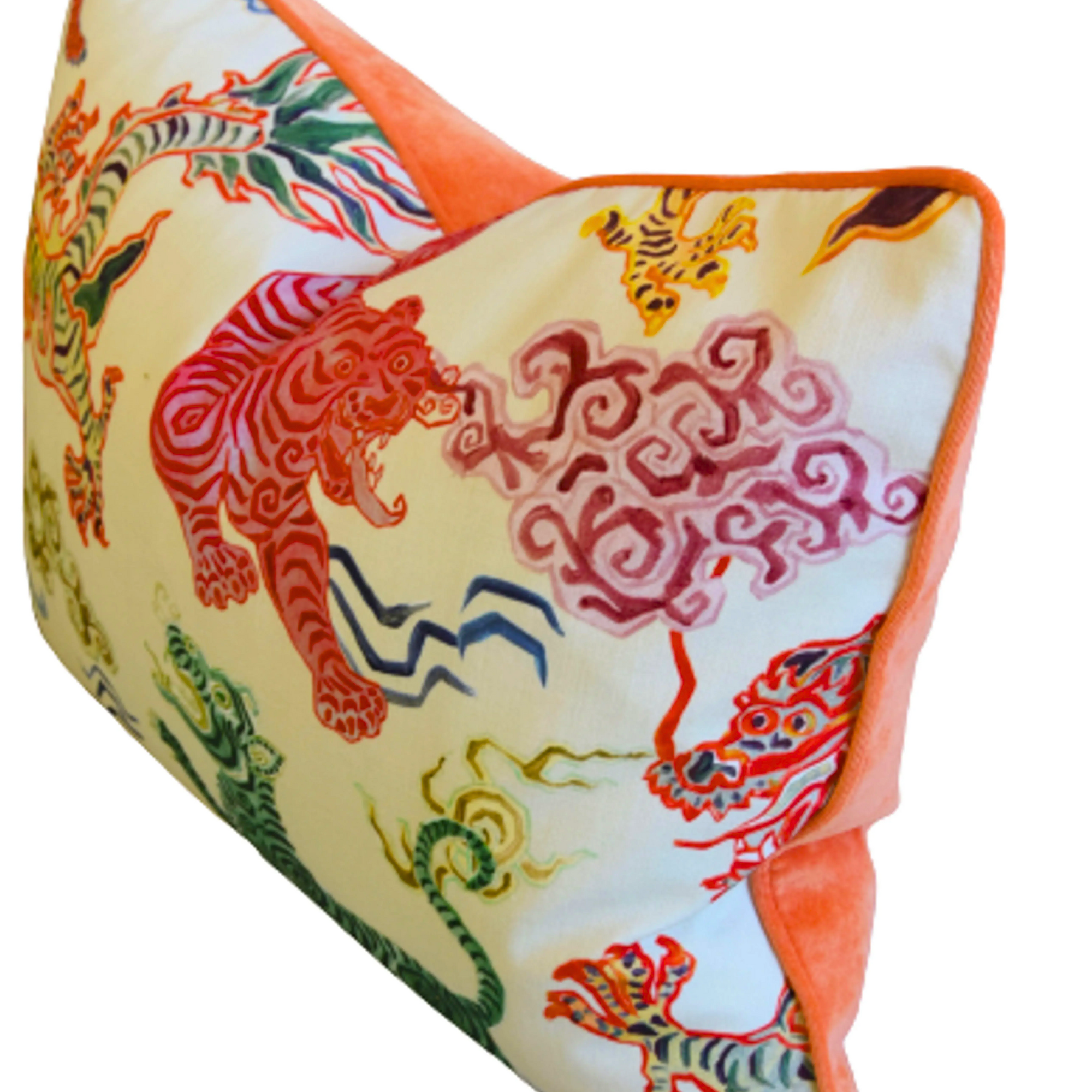 Bespoke without the wait y'all - get your dream piece with quick shipping! This 22” Square Pillow in Tiger Velvet and Monet Tangerine was made by our in-house team.