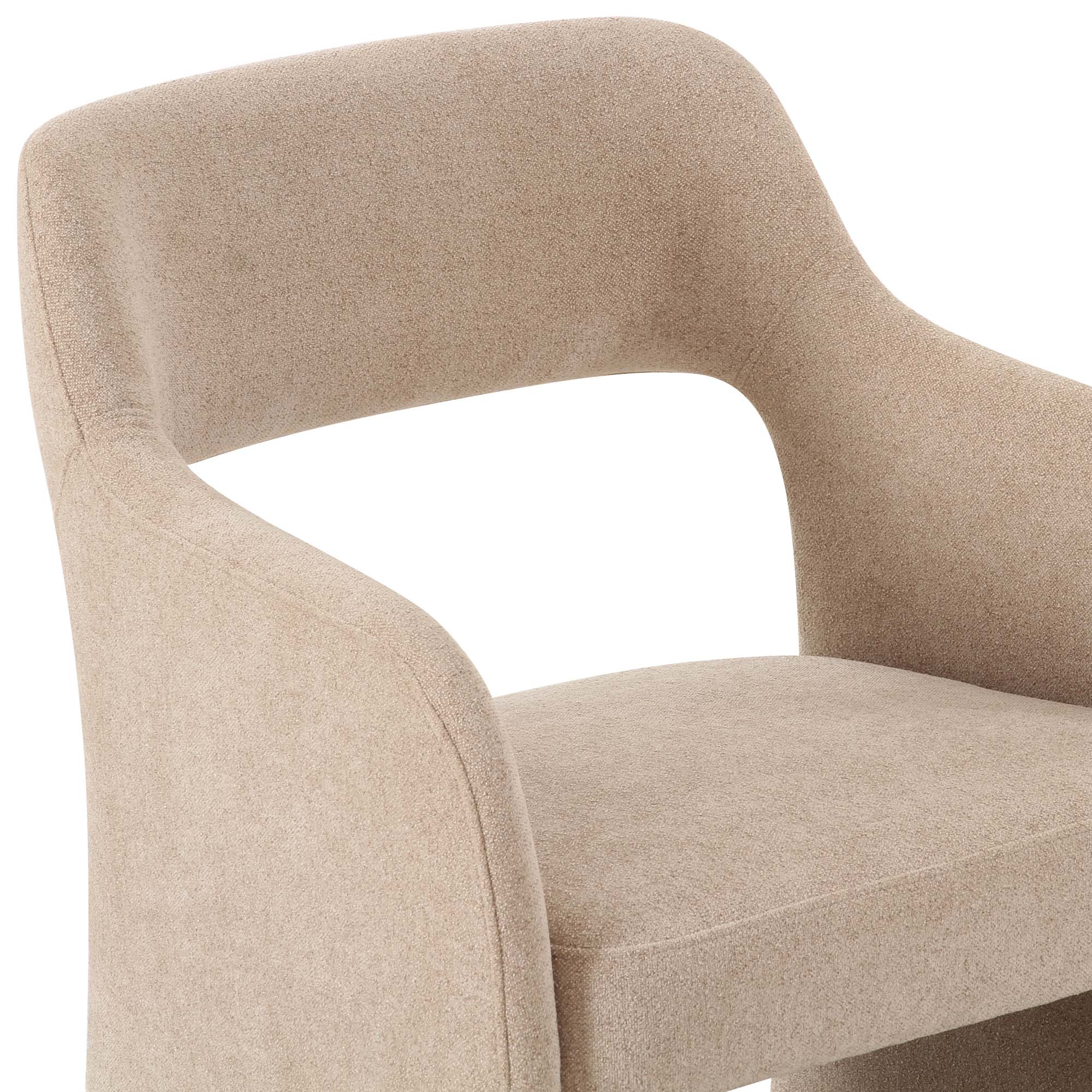 Soft and durable, the taupe chenille upholstery features subtle texture with just the right amount of weight and structure to stand the test of time.