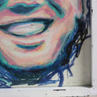 A bold, expressive portrait bursting with movement. Layered strokes of cobalt, teal, blush, and inky navy, captures a face mid-expression—alive, imperfect, and deeply human.