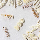From the Tat Frederick studio, 'Where'd You Go Bernadette - Pearls' features pearl hair barrettes, hand-placed on canvas and framed in an acrylic shadowbox.