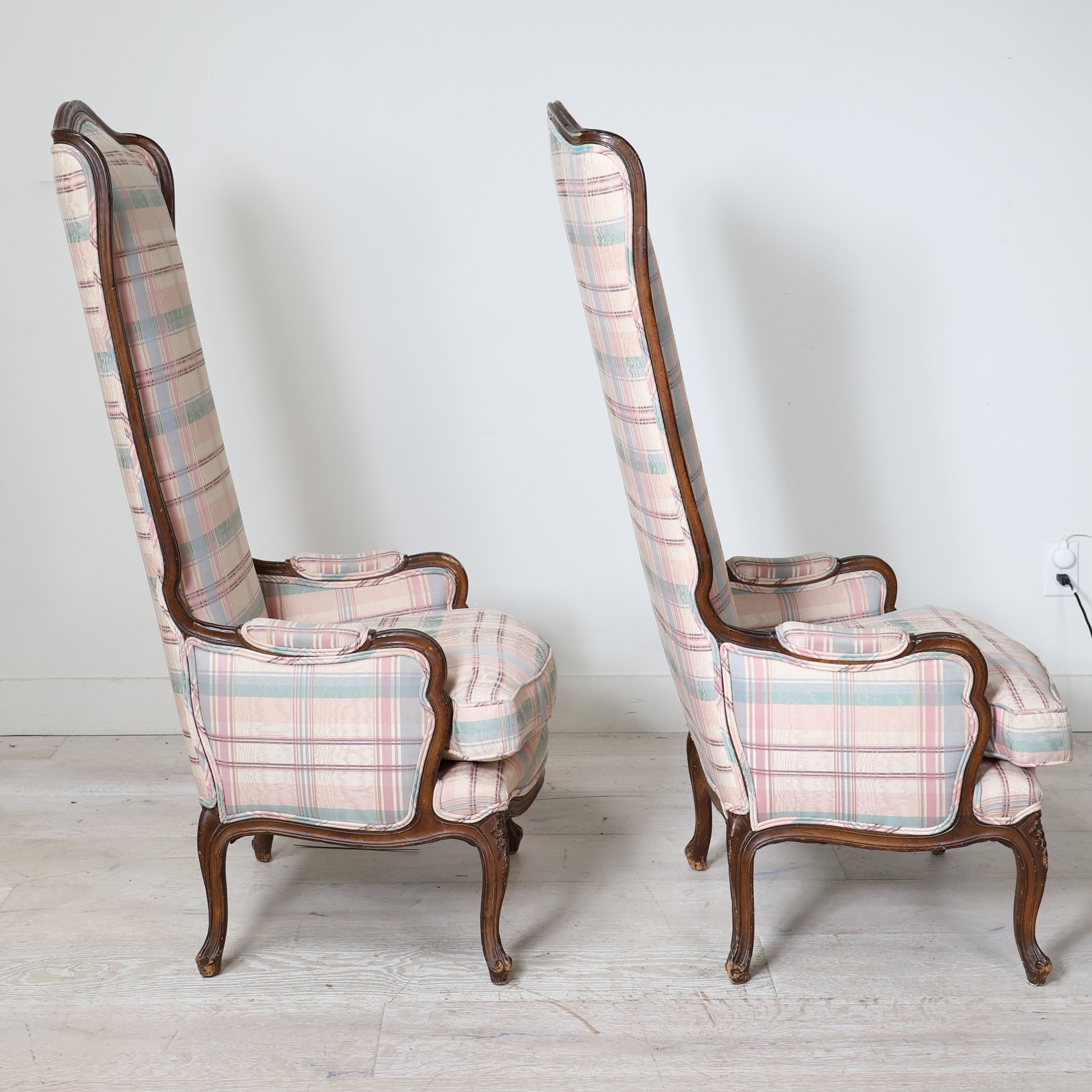 Dramatic high back silhouettes give these vintage occasional chairs potential for one helluva 'before & after' moment. These drama mamas rest atop dark stained legs, that could also be refinished by our team for a whole new lewk.