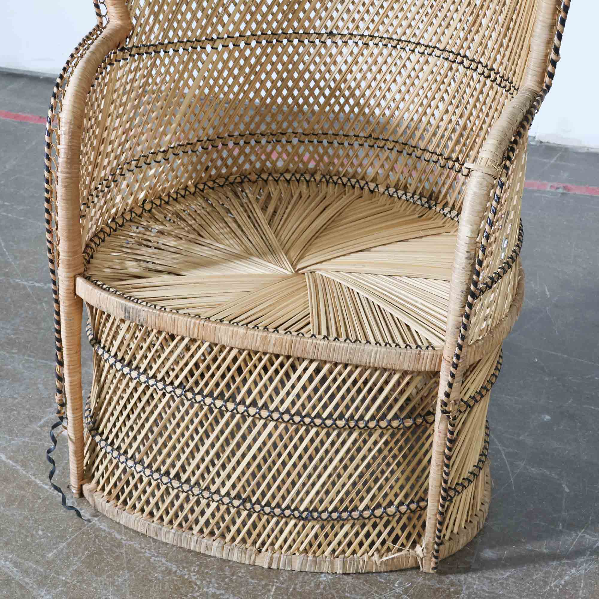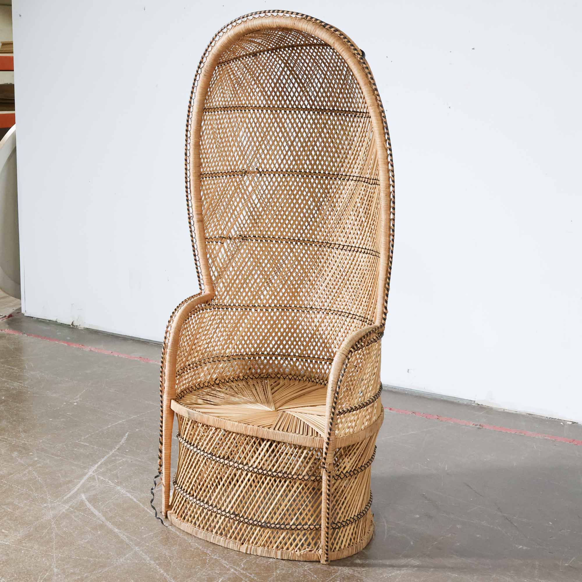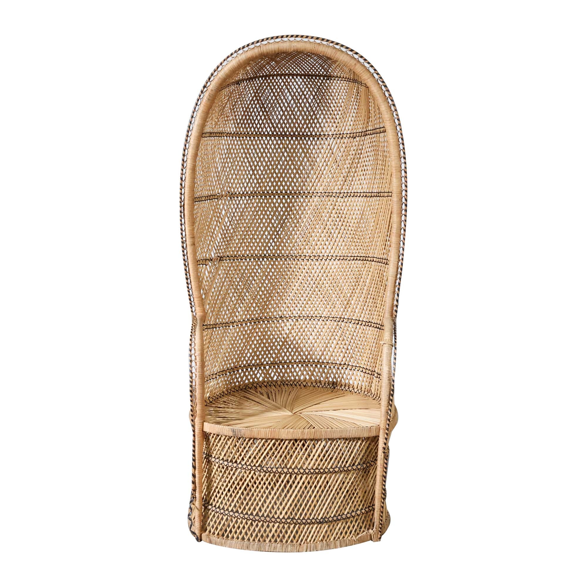 This Peacock style chair is strutting down the vintage runway with its exaggerated high back. Constructed of woven rattan, this occasional chair is the perfect vintage perch to add some personality to your space!