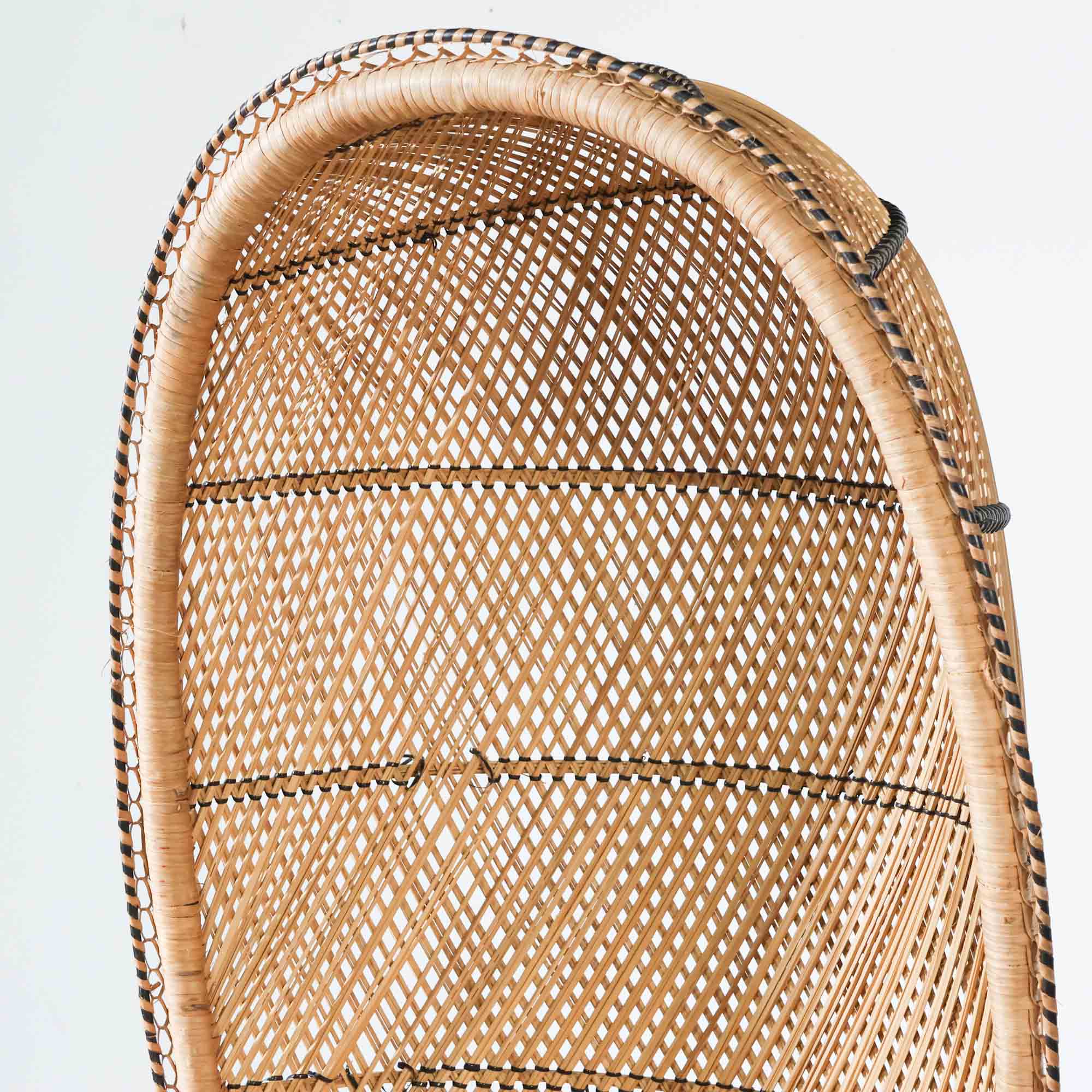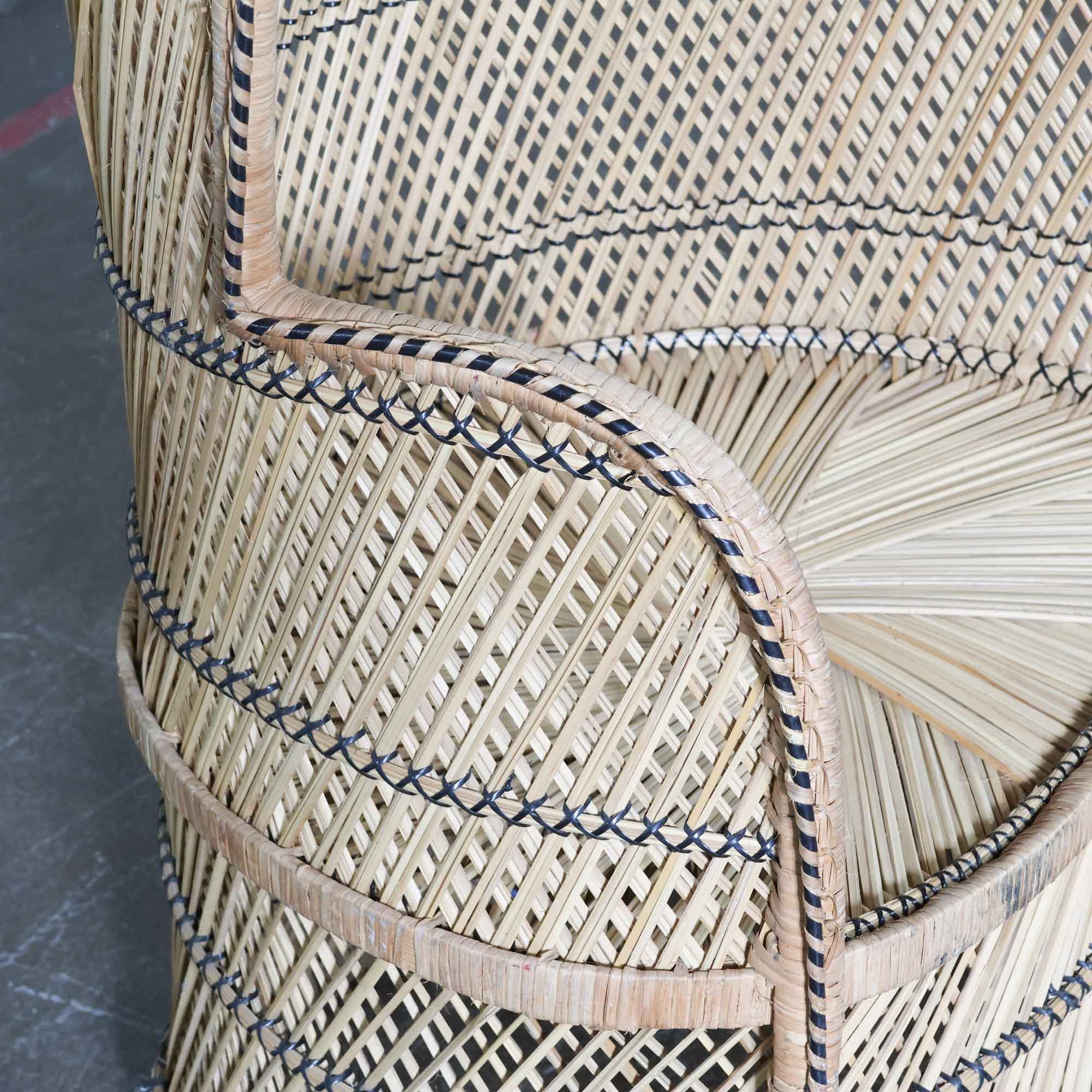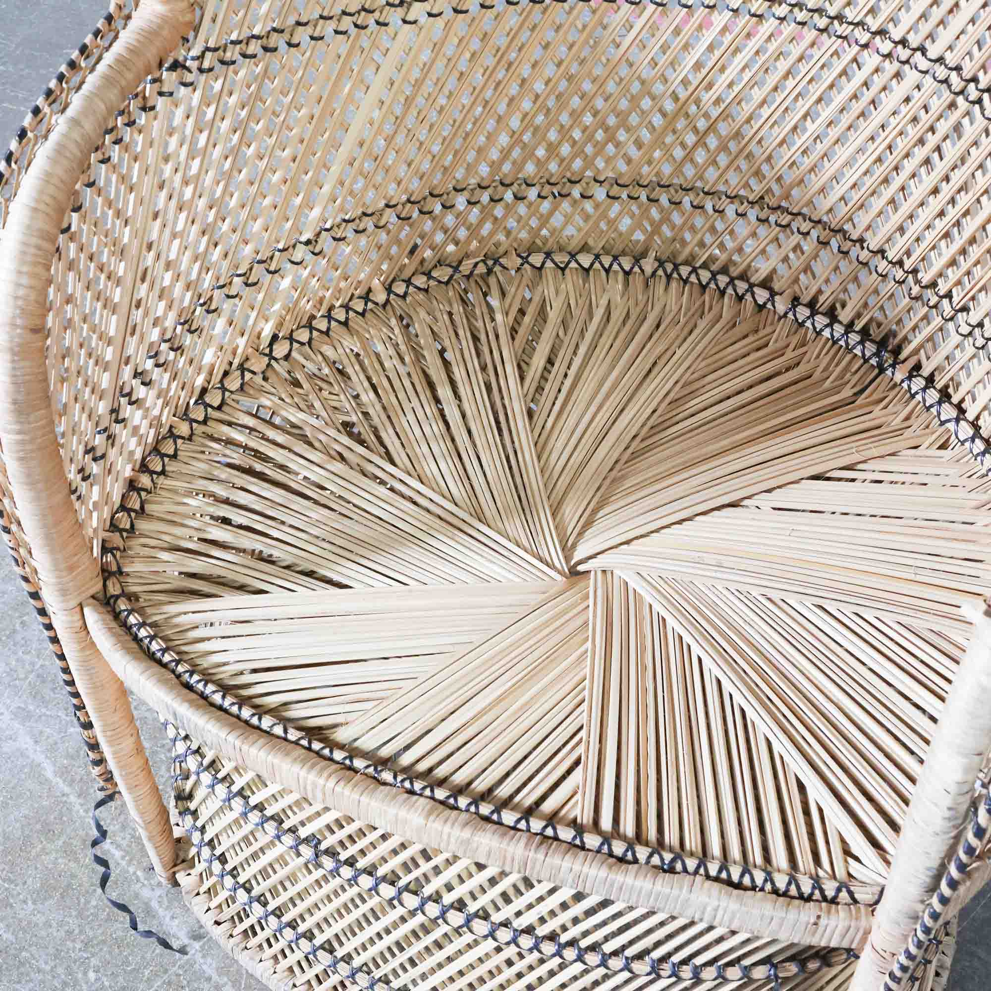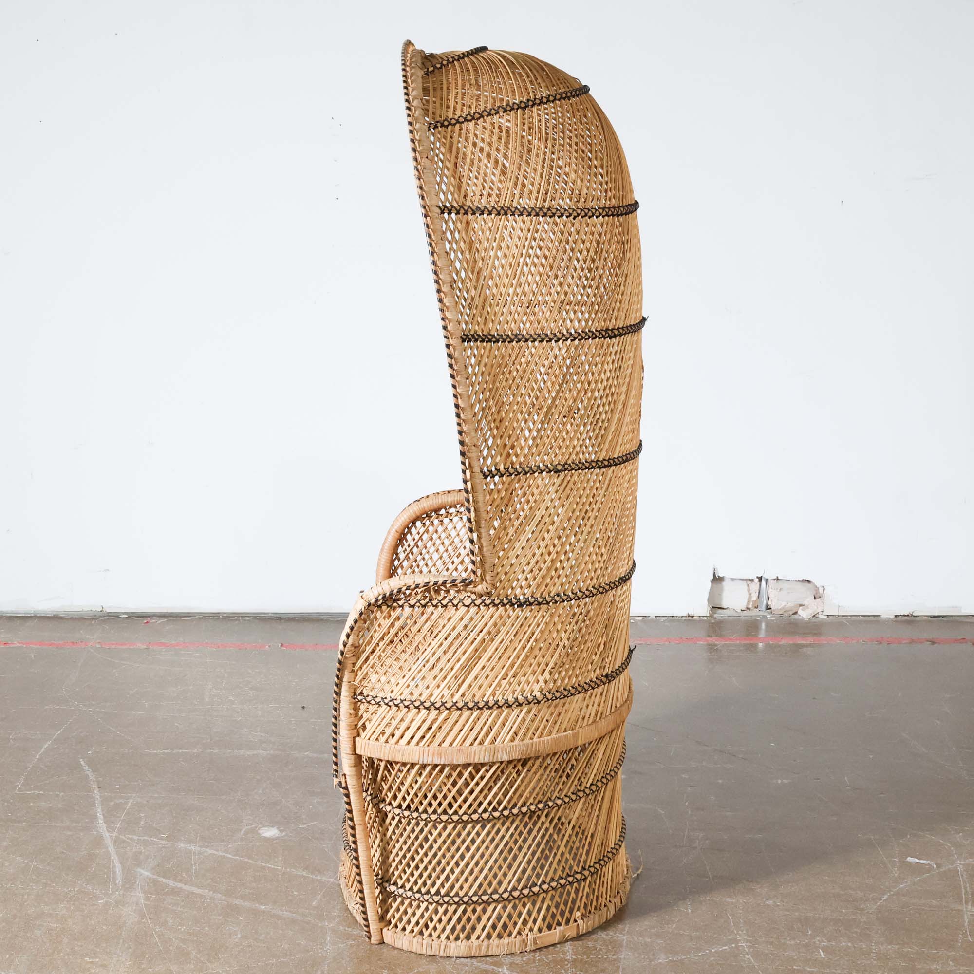 This Peacock style chair is strutting down the vintage runway with its exaggerated high back. Constructed of woven rattan, this occasional chair is the perfect vintage perch to add some personality to your space!