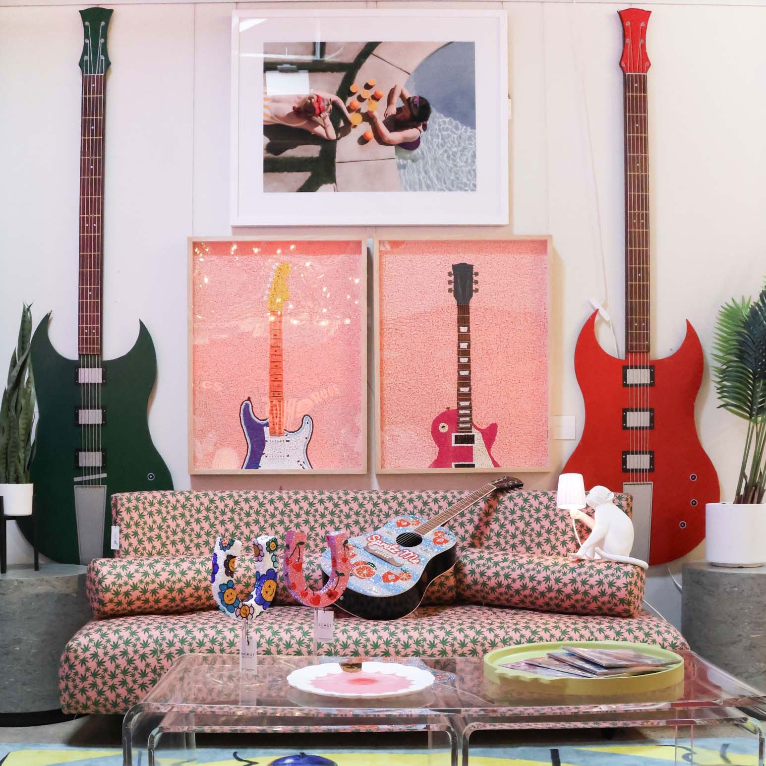 Scouted at Round Top, this oversized red guitar sculpture hits all the right notes. Towering at 8 feet tall, we love its bold curves, sharp detailing, and stage-ready attitude.