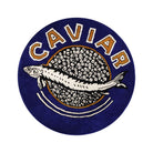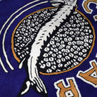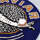This custom circle rug was designed by Scout and hand-tufted by artisans in India. It features a durable wool pile that's super soft underfoot and a blue background with a caviar design.