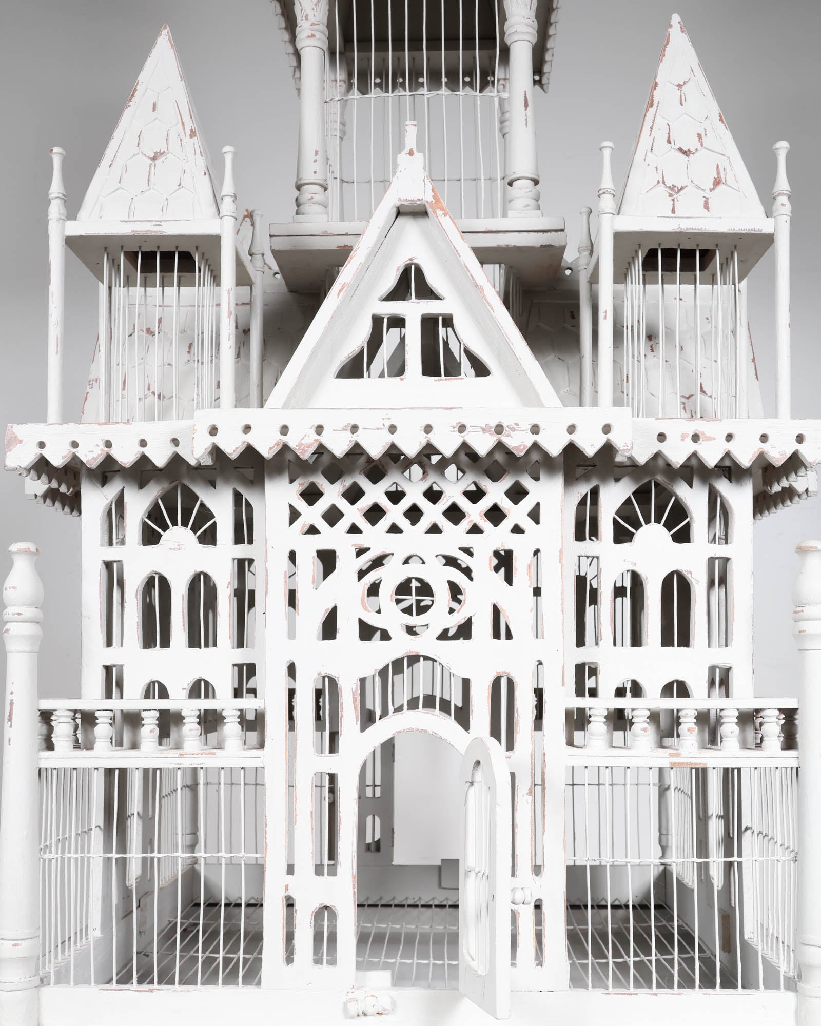 Fretwork Sofa with Rolled Arms in Dolce Marshmallow and Shoji White