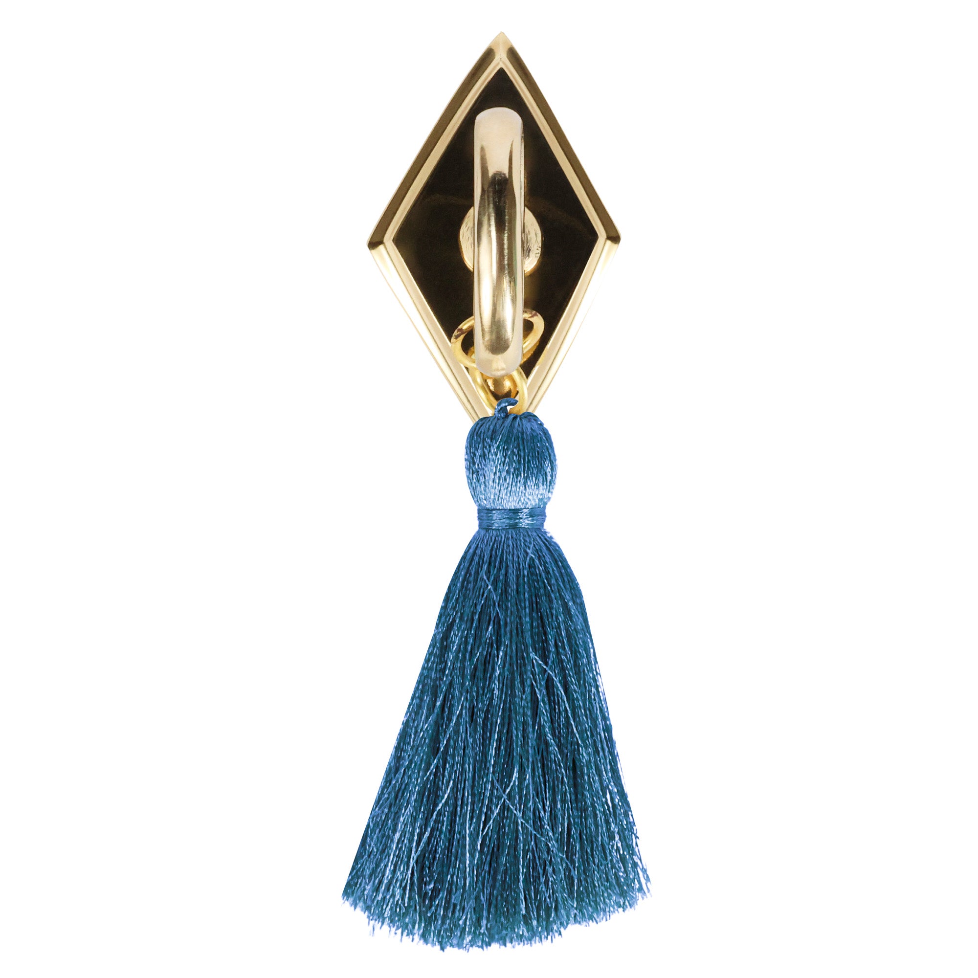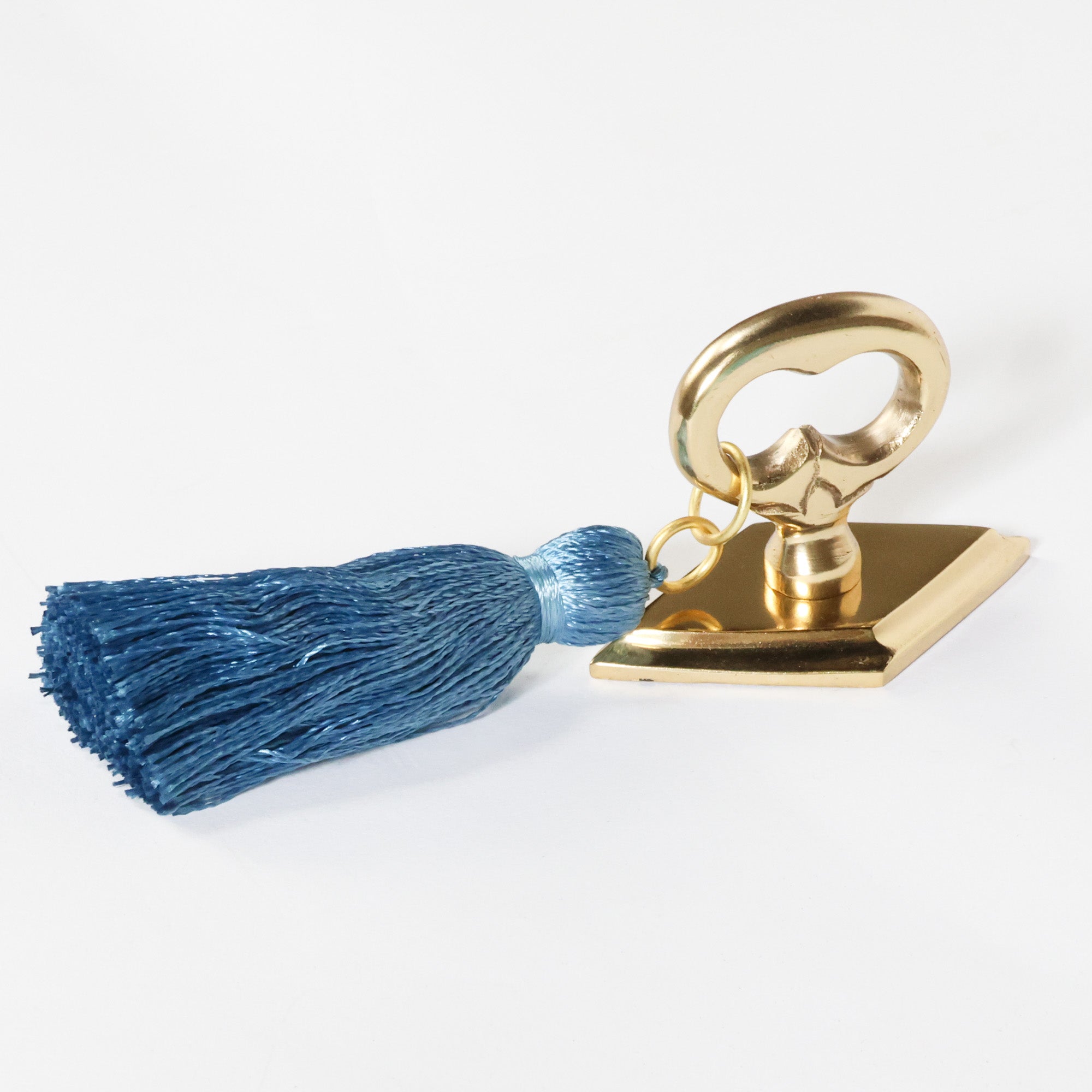 Our Tassel Knob features a diamond brass backplate and ring pull with carved details.