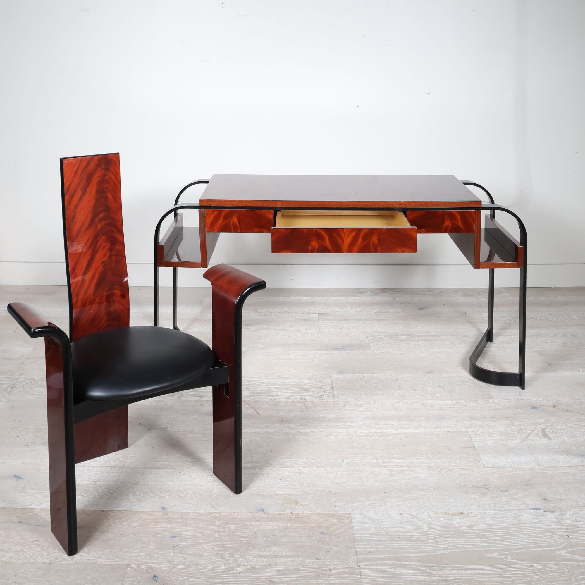 This Italian writing desk and chair set channels the bold elegance of Eugène Printz with its streamlined geometry and luxurious materials.