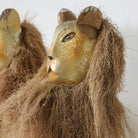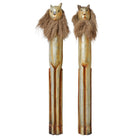 A statement pair with personality to spare. Standing at an impressive 60" tall, this carved wood pair commands attention with elongated fluted bodies and expressive faces framed by natural fiber manes.