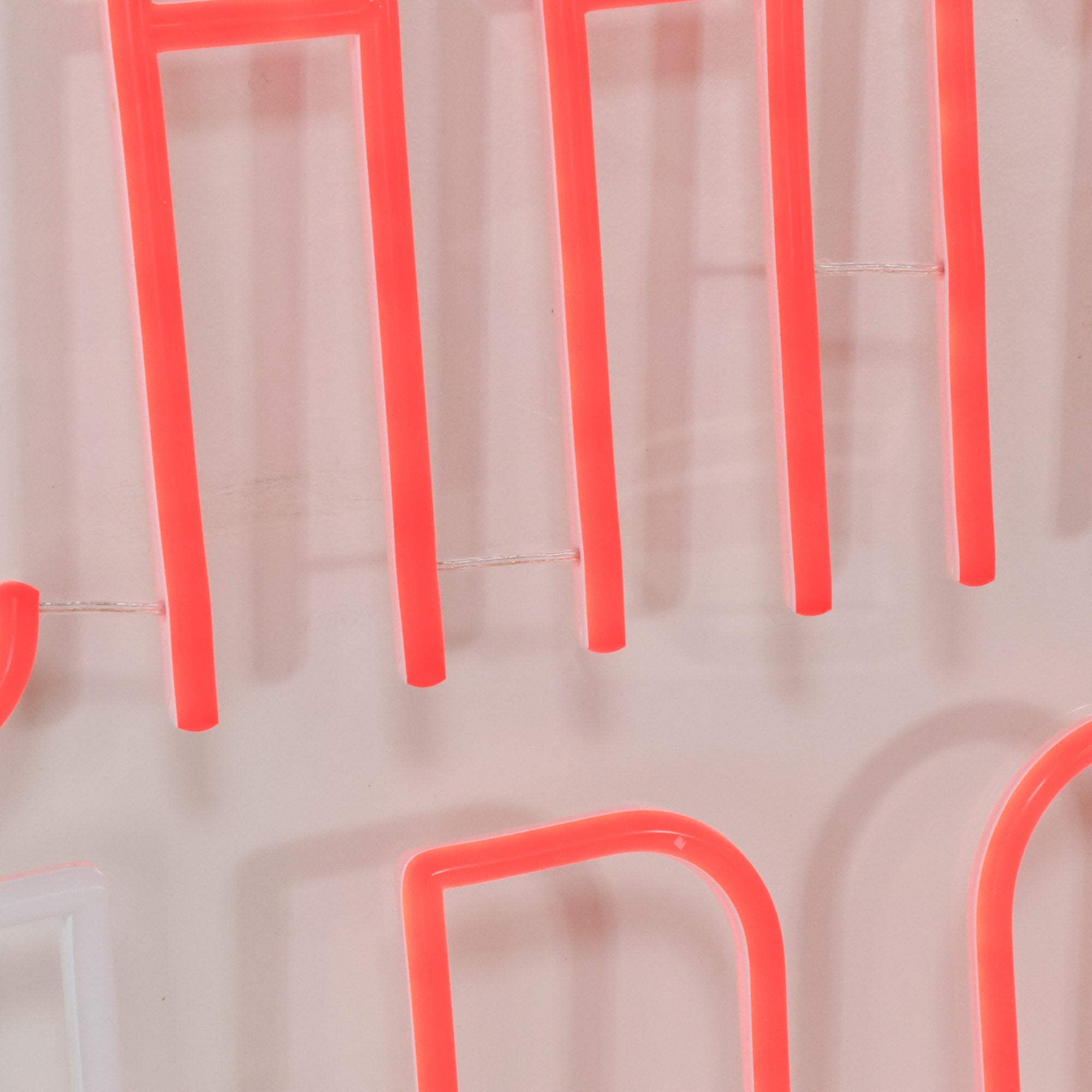 Neon on acrylic. Two cords plug into the wall with a dimmer switch to adjust the brightness.