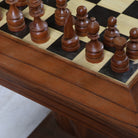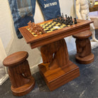 Crafted in warm natural wood with a classic inlaid chessboard and full set of pieces. Bold, handsome, and unmistakably unique — checkmate, indeed.