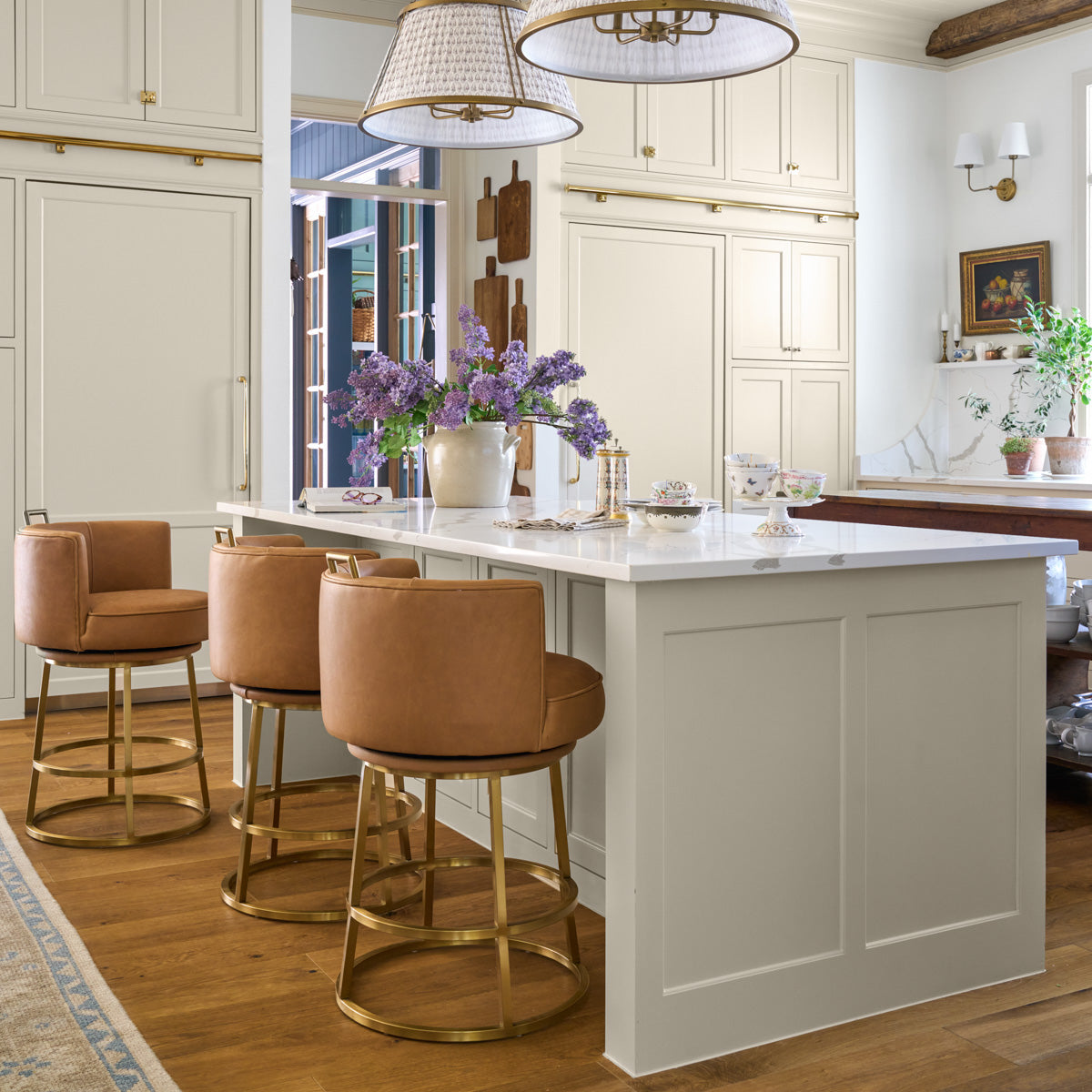 Rosita Swivel Counter Stool in Tobacco Leather