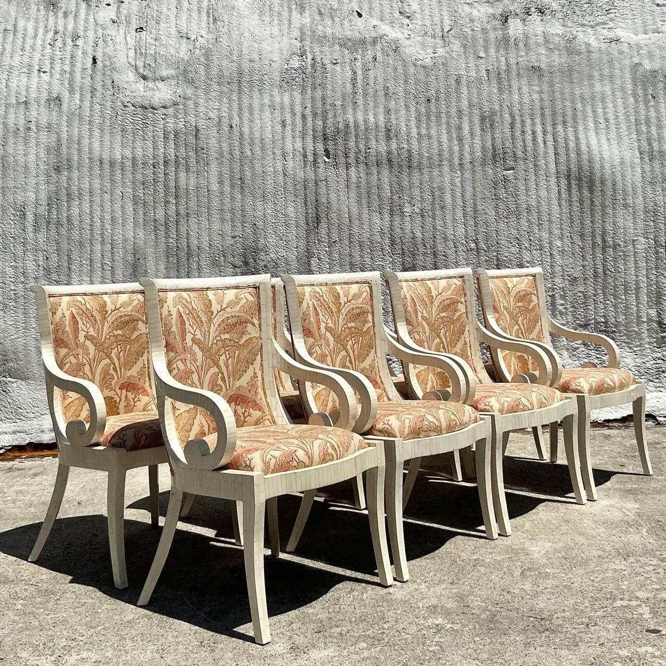 Set of 8 Tessellated Bone Inlay Dining Chairs