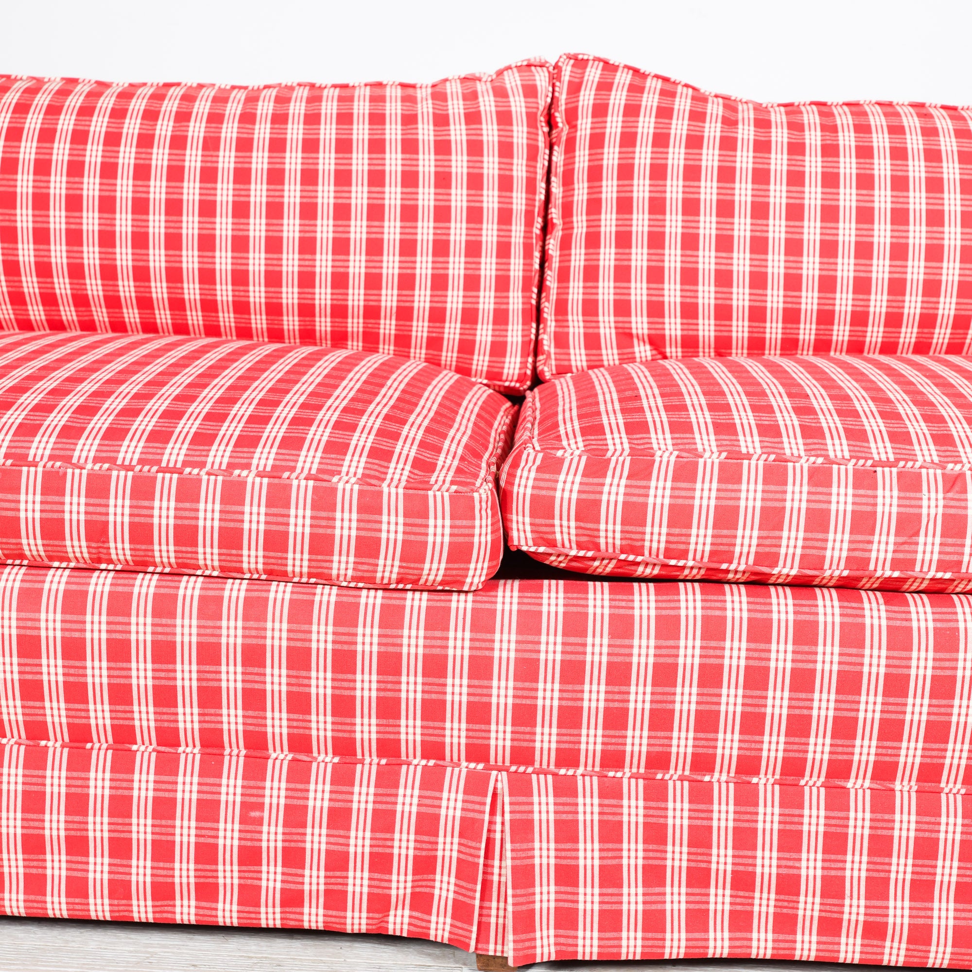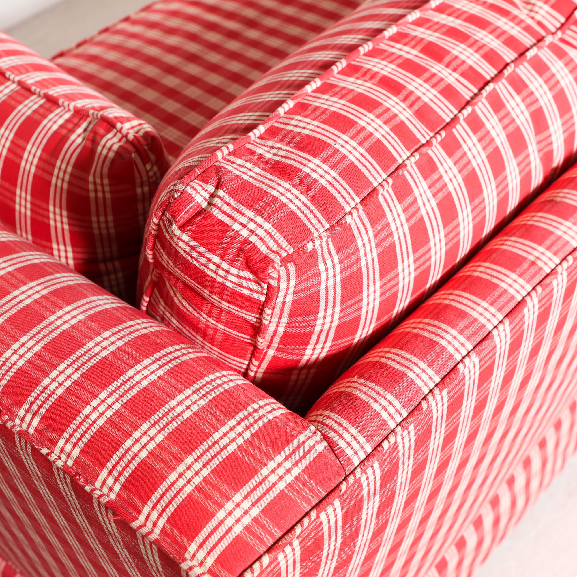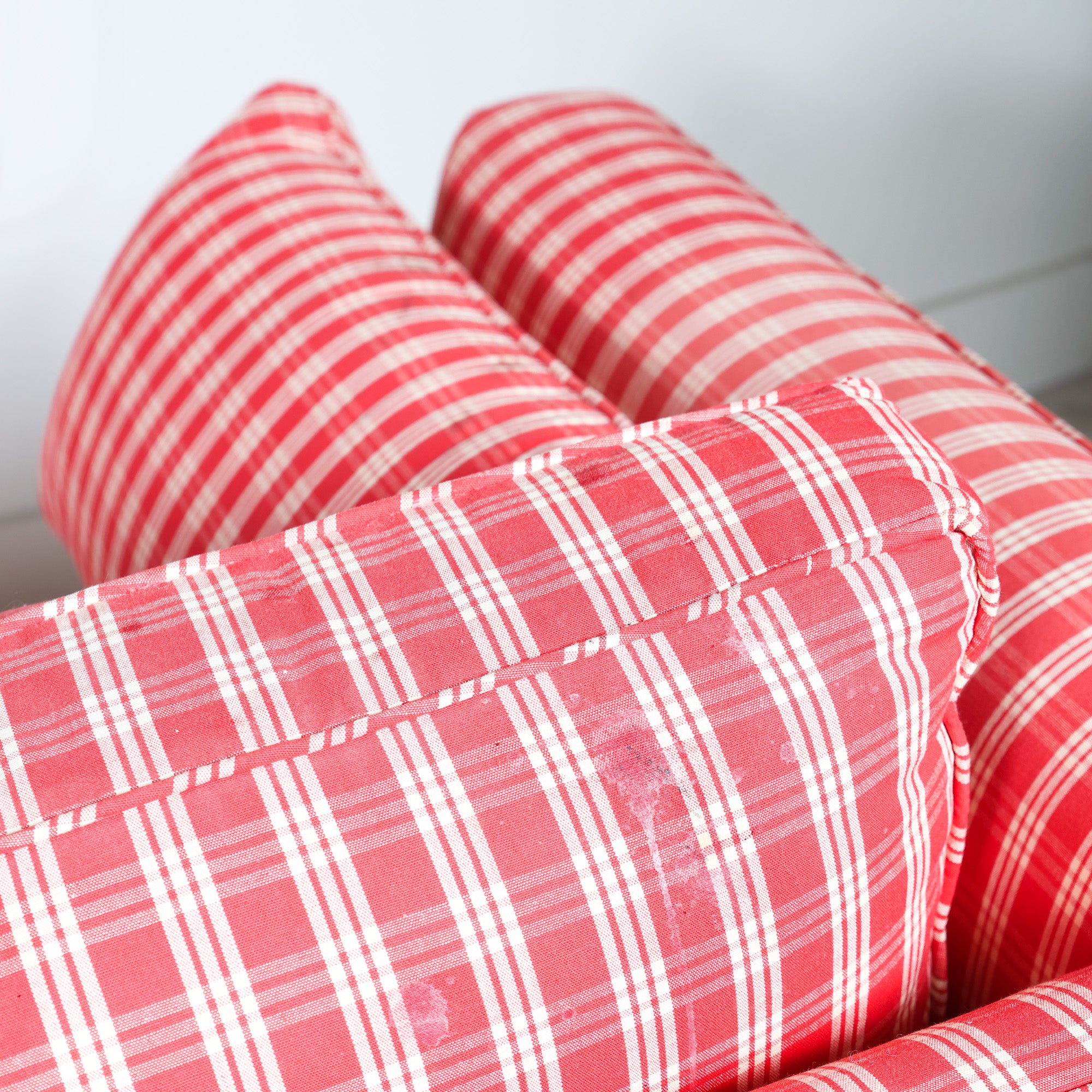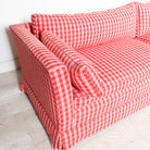 This vintage red plaid sofa is perfectly tailored in the cutest preppy plaid fabric with plush cushions. We can't decide if it belongs on a sun porch or a mountain chalet. We love the vibes wherever she goes!