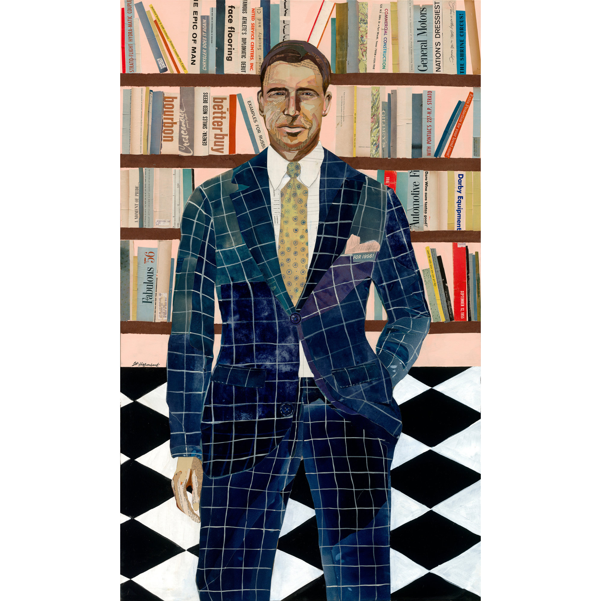 Previously known as Blaire Kaufman Art, BK Holsomback combines painting and mixed media to create vibrant works inspired by Americana and Western culture. Based in Dallas, BK’s pieces play with the idea of being “Americanized” — blending nostalgic nods to Hollywood glamour, 1950s pop culture, sports, and classic American icons like cowboys and Indians. She enjoys creating playful color concepts and adding graphic touches through the use of paint and found materials — from vintage papers and photos, to florals and paint chips — hoping to give each piece a refreshing modern twist on midcentury Americana.